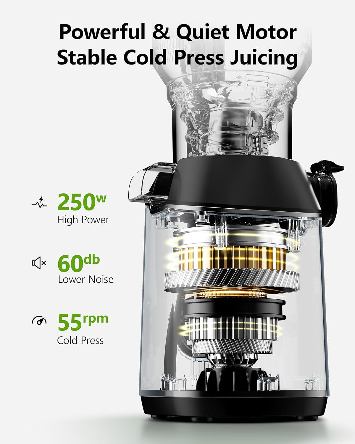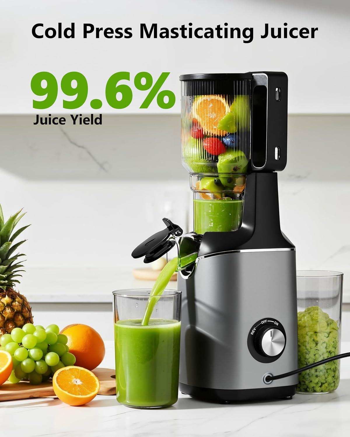 【99.6% Juice Yield】 Slow 55 RPM cold press extracts maximum juice with minimal oxidation, keeping every glass nutrient-rich and fresh.