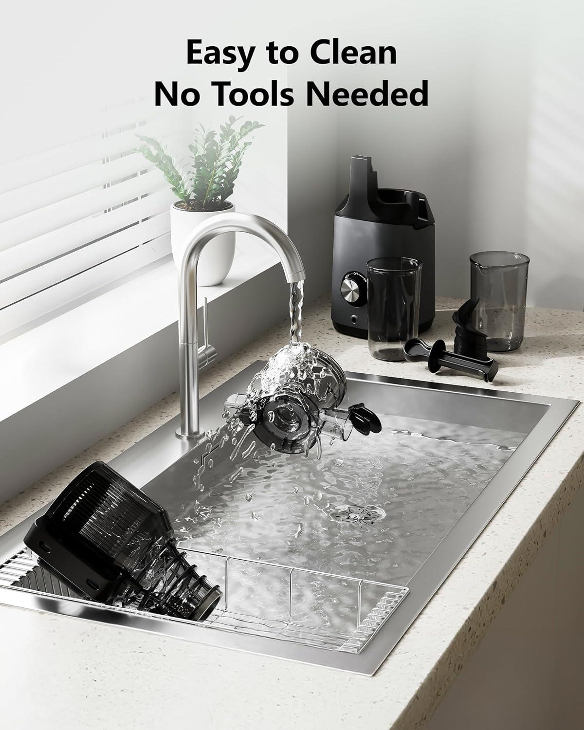 【Reverse & Anti-Clog】 Equipped with reverse mode to handle blockages instantly. Enjoy uninterrupted juicing without the mess.