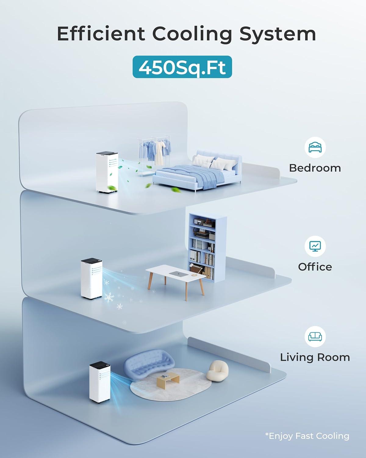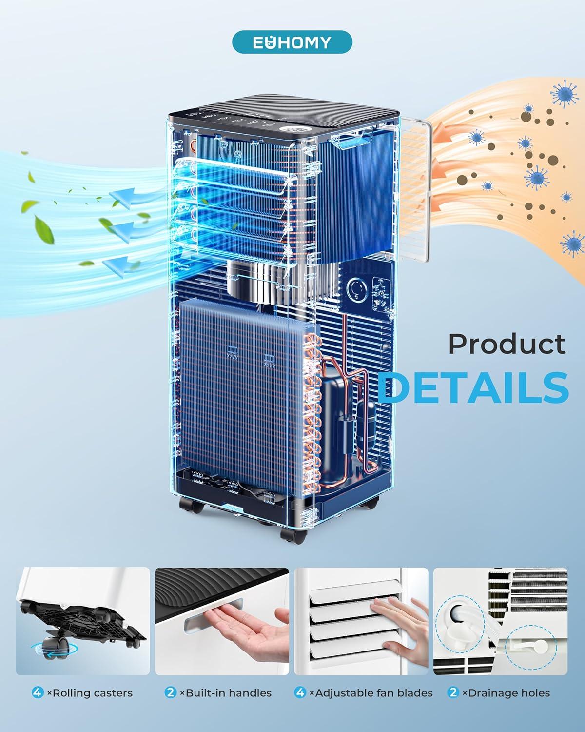 EUHOMY 10,000 BTU Portable Air Conditioners Up to 450 sq.ft, 3-1 Standing Smart Cooling AC with Remote, Dehumidifier, Fan, Air Conditioner Cools Room, 3 Modes, 24-hour timer, LED Display, Bedroom(10 000 BTU)
