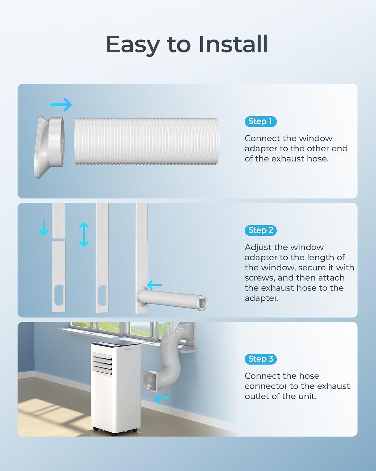 𝐄𝐚𝐬𝐲 𝐭𝐨 𝐈𝐧𝐬𝐭𝐚𝐥𝐥: Equipped with 360° wheels and ergonomic hidden handles, this compact AC unit can be easily moved. Move the portable AC to any space, securely attach the included extendable hose and customizable window adapter, and you're ready to go. 𝐈𝐌𝐏𝐎𝐑𝐓𝐀𝐍𝐓 𝐈𝐍𝐅𝐎𝐑𝐌𝐀𝐓𝐈𝐎𝐍: This AC's window kit includes adjustable panels, but the window kit can not provide installation of windows between 25.6 in and 36 in. If your window falls within this range, you may need to trim/cut the mounting kit to ensure proper installation and perfect sealing