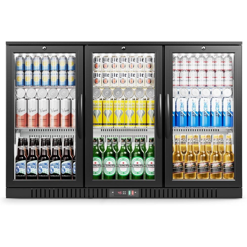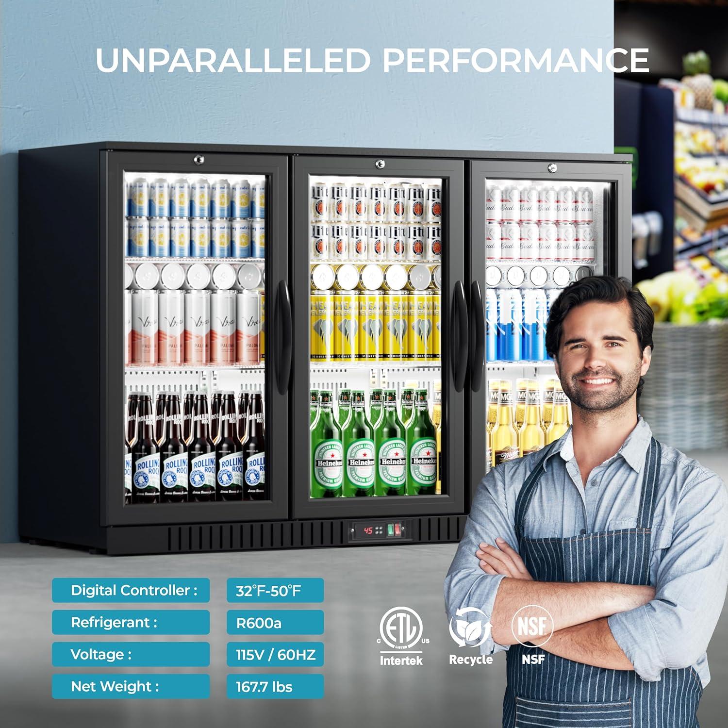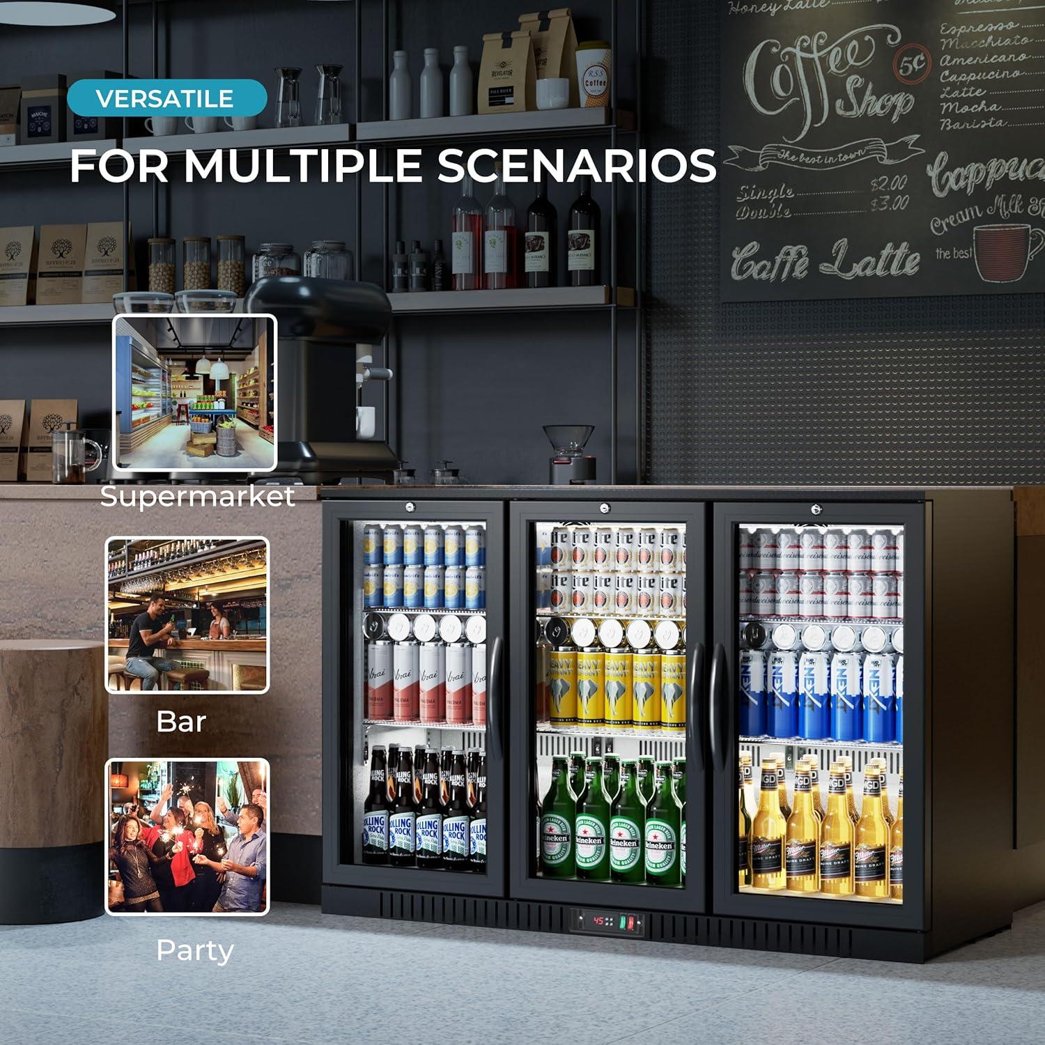 EUHOMY 11.4Cu.Ft Back Bar Cooler With 3 Glass Doors, 53" Counter Height Beverage Refrigerator with LED Lighting, Commercial Display Bar Fridge for Beer,Soda Drinks,Wine, Black(3 Door Back Bar Cooler)