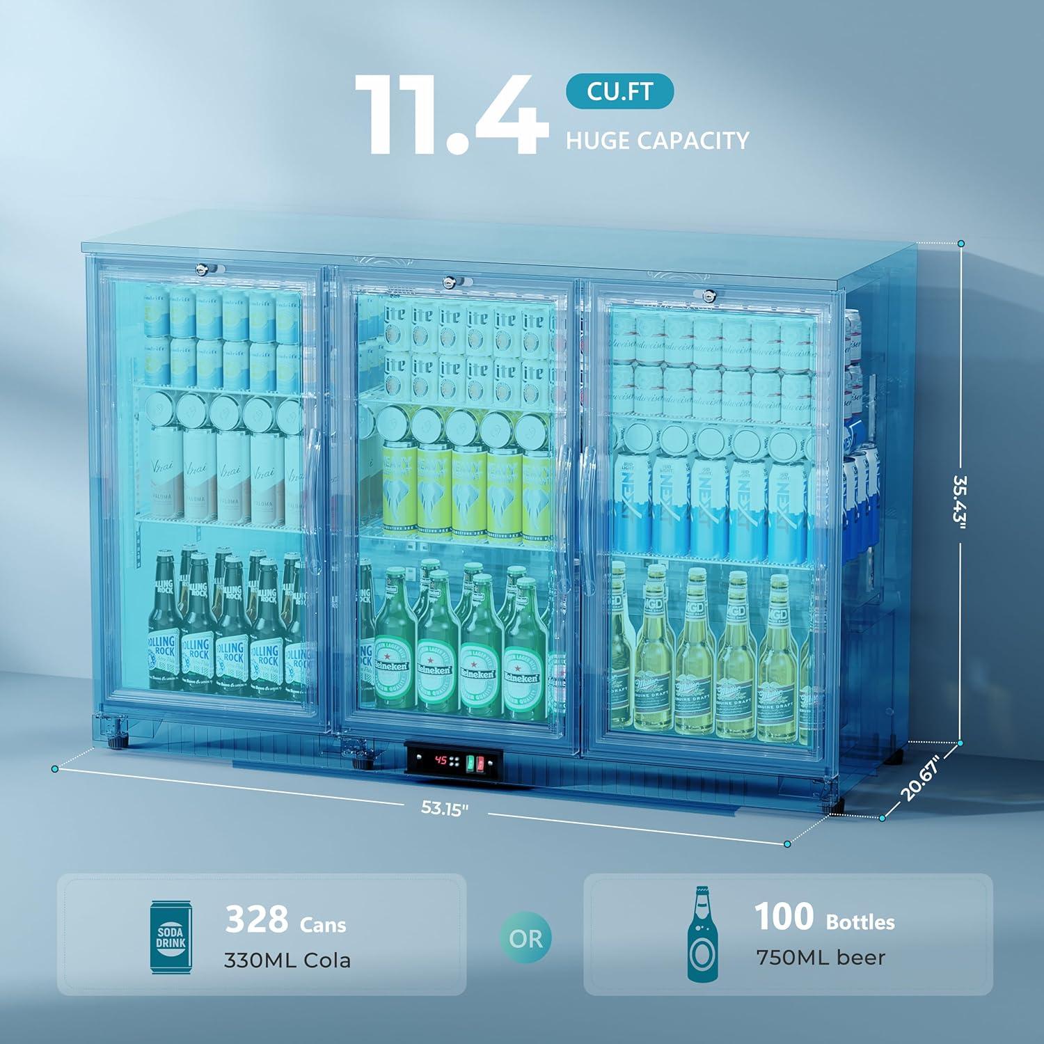 EUHOMY 11.4Cu.Ft Back Bar Cooler With 3 Glass Doors, 53″ Counter Height Beverage Refrigerator with LED Lighting, Commercial Display Bar Fridge for Beer,Soda Drinks,Wine, Black(3.2 CUFT Beverage Refrigerator)