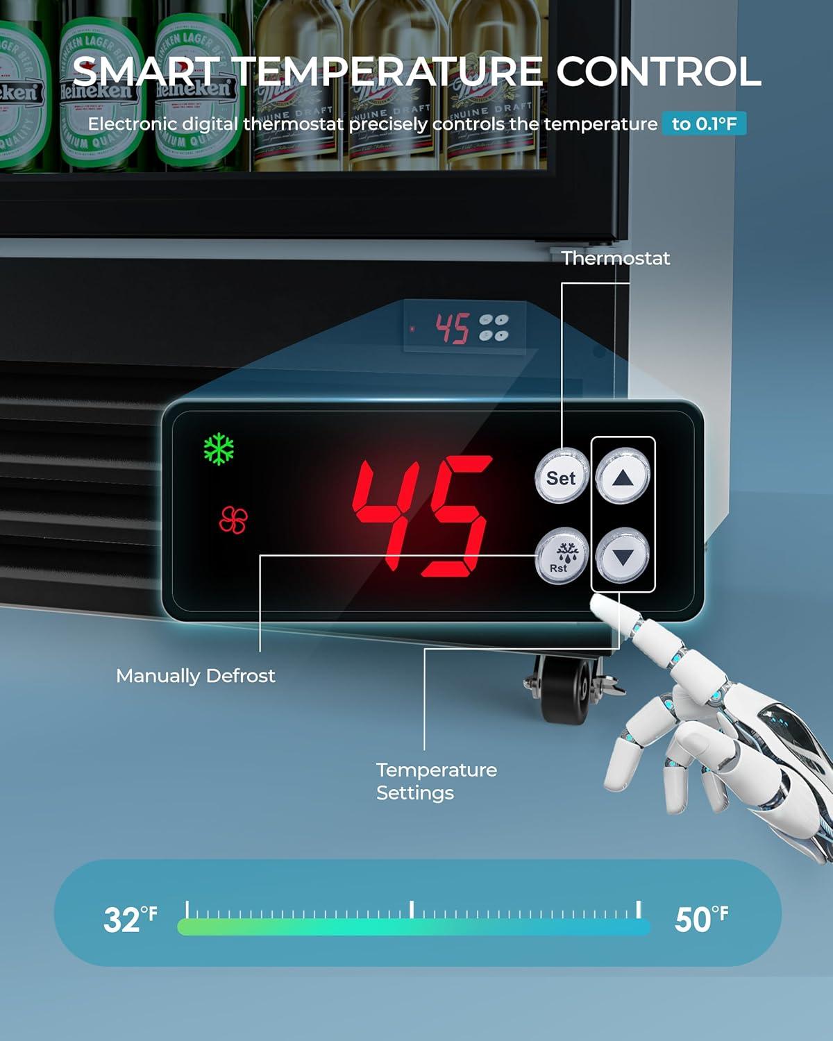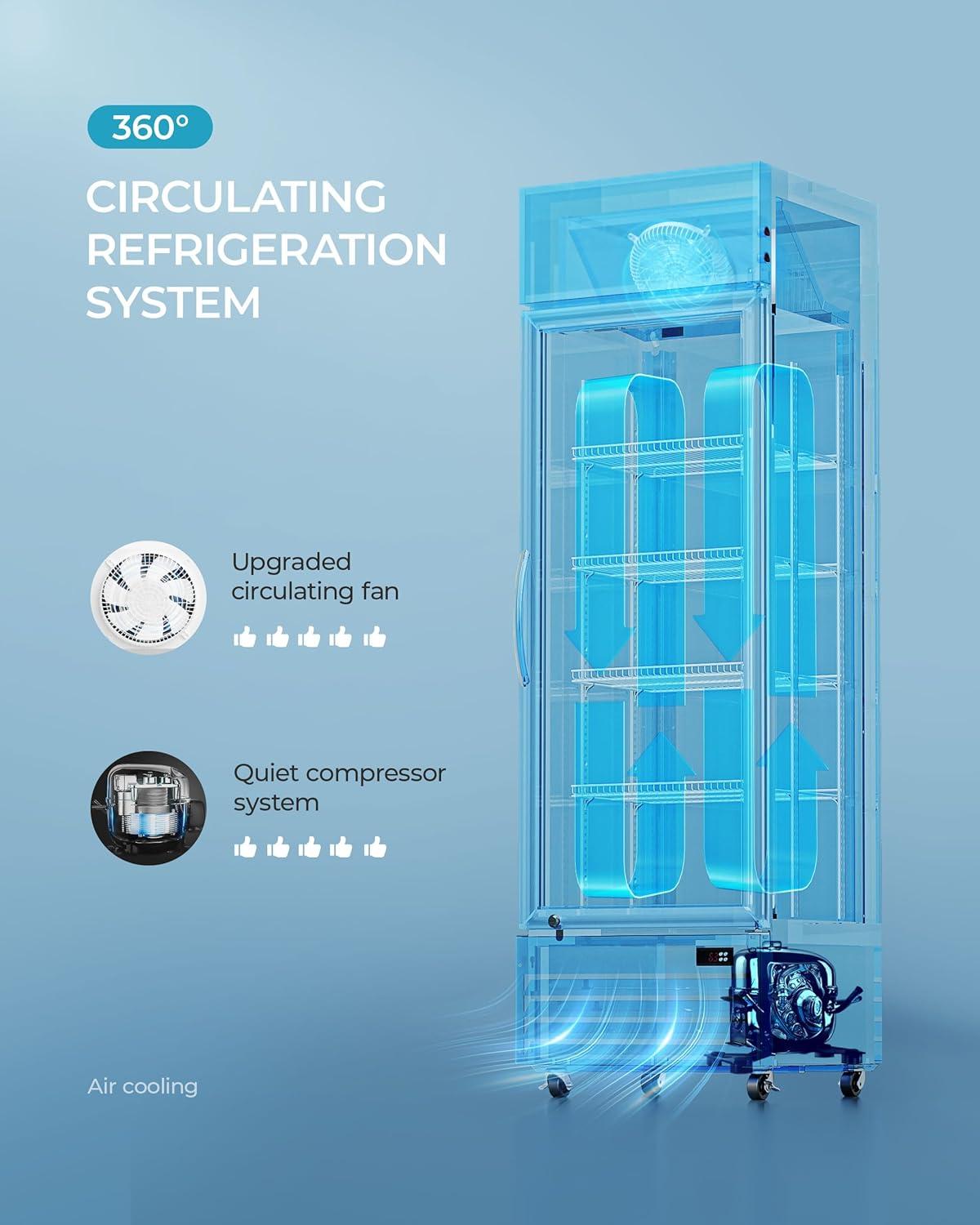 Digital Controls & Auto Defrost: This beverage cooler with glass door features an intuitive digital temperature control system, allowing you to set the temperature between 32℉ and 50℉. The easy-to-read LED display and automatic defrost function make maintenance simple, keeping your drinks fresh and at the perfect temperature. Like other commercial refrigerators, it’s designed to make your life easier with reliable functionality