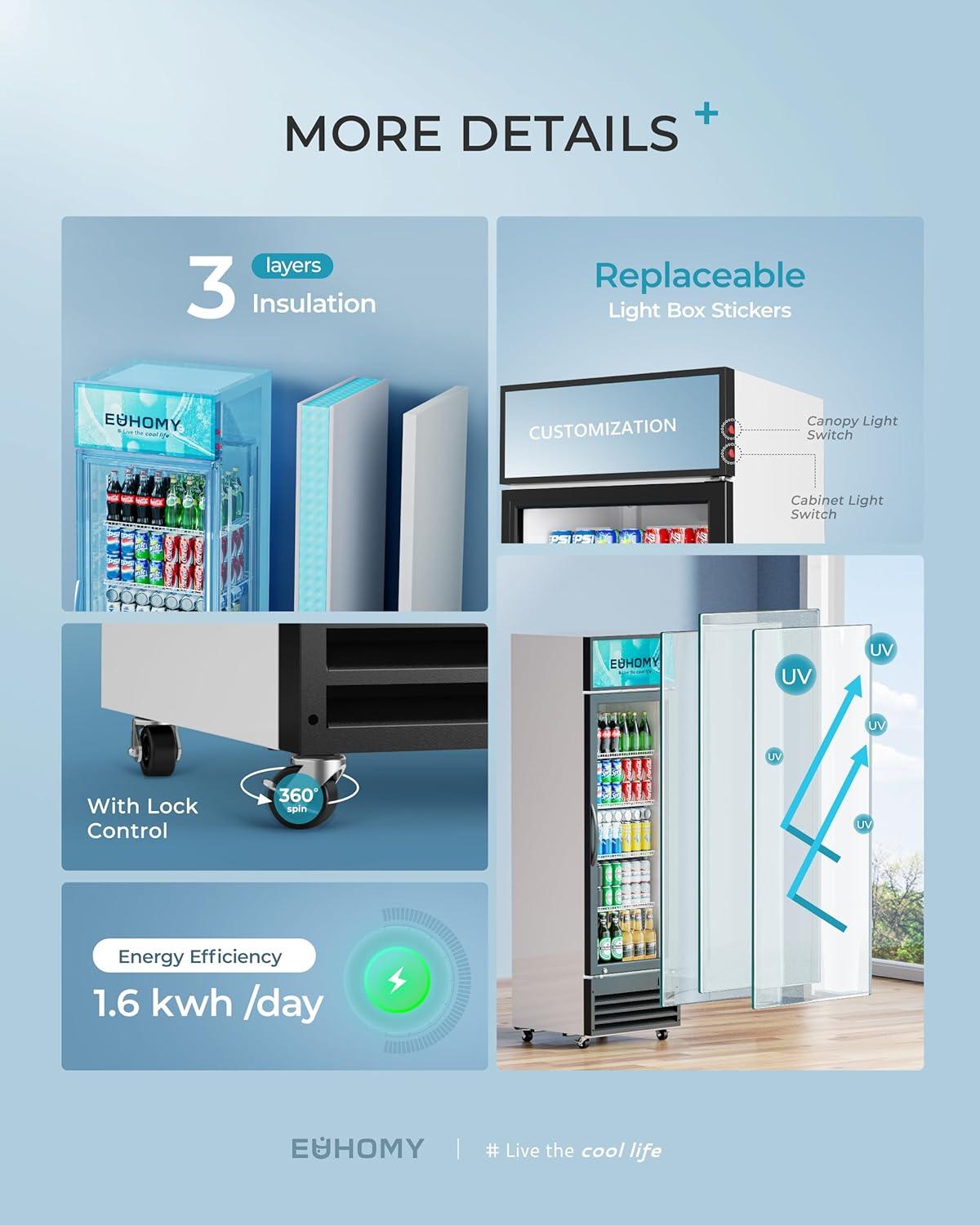 Get up to 50% off on EUHOMY 11.4Cu.Ft Back Bar Cooler With 3 Glass Doors, 53" Counter Height Beverage Refrigerator with LED Lighting, Commercial Display Bar Fridge for Beer,Soda Drinks,Wine, Black(9 CUFT Commercial Refrigerator) styles during our spring sale event.
