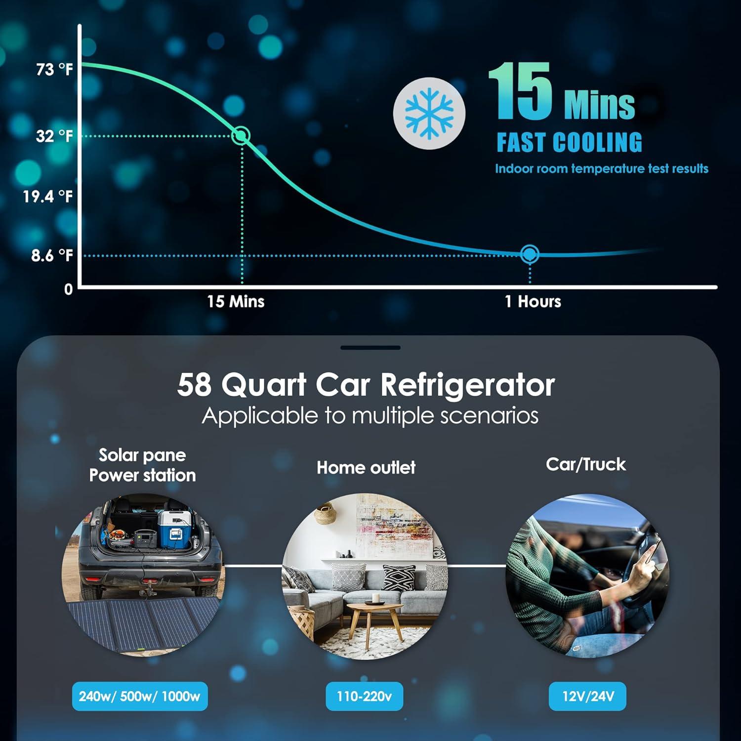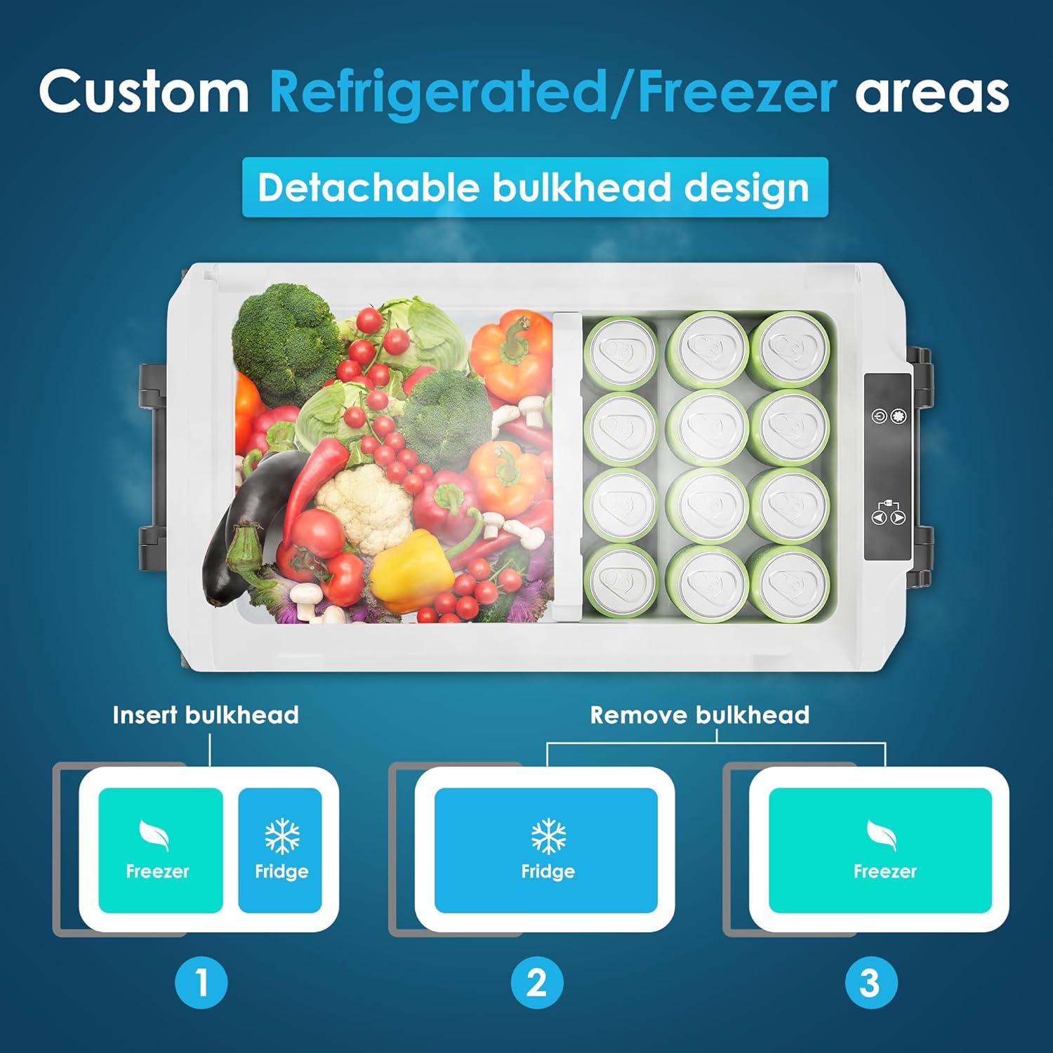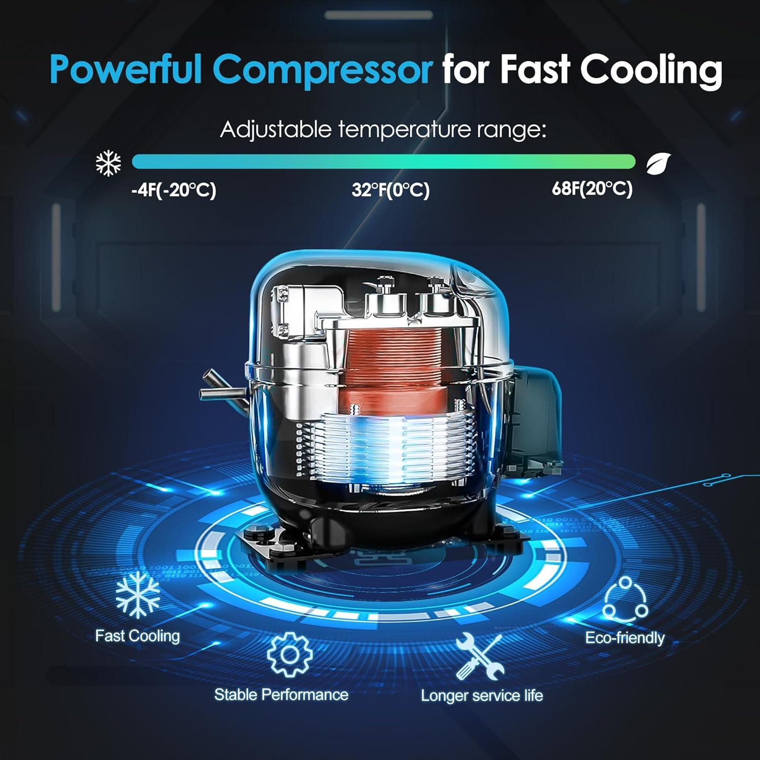 Powerful Compressor & APP Control:This compact and portable 12V cooler combines convenience and performance with its spacious 11 quart capacity, functioning seamlessly as both a fridge and freezer. Powered by an advanced compressor, it rapidly cools from 68°F to 32°F in just 15 minutes, ensuring your food and drinks stay fresh and chilled. Enhanced with Bluetooth connectivity and app control, this portable freezer allows you to effortlessly monitor and adjust settings remotely.