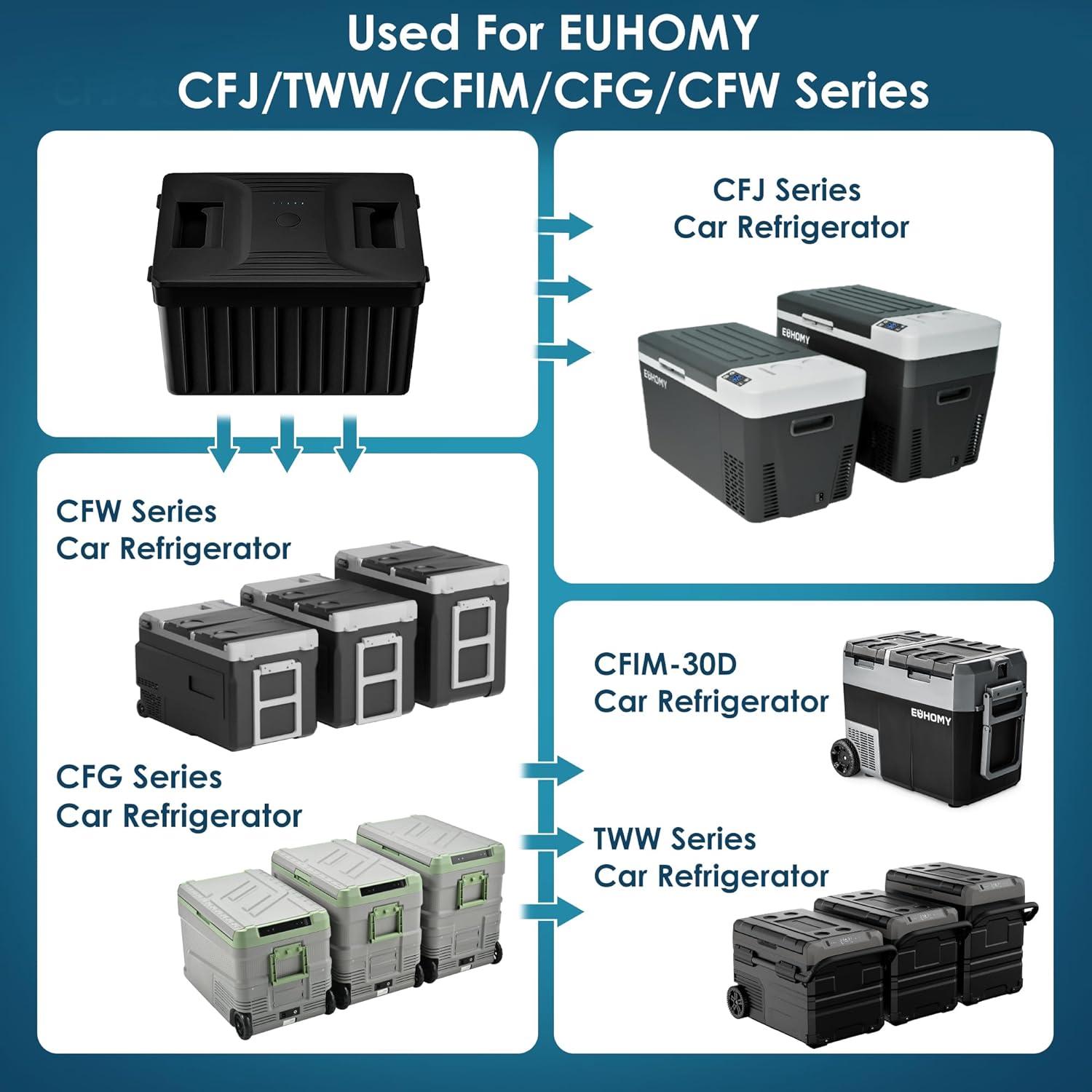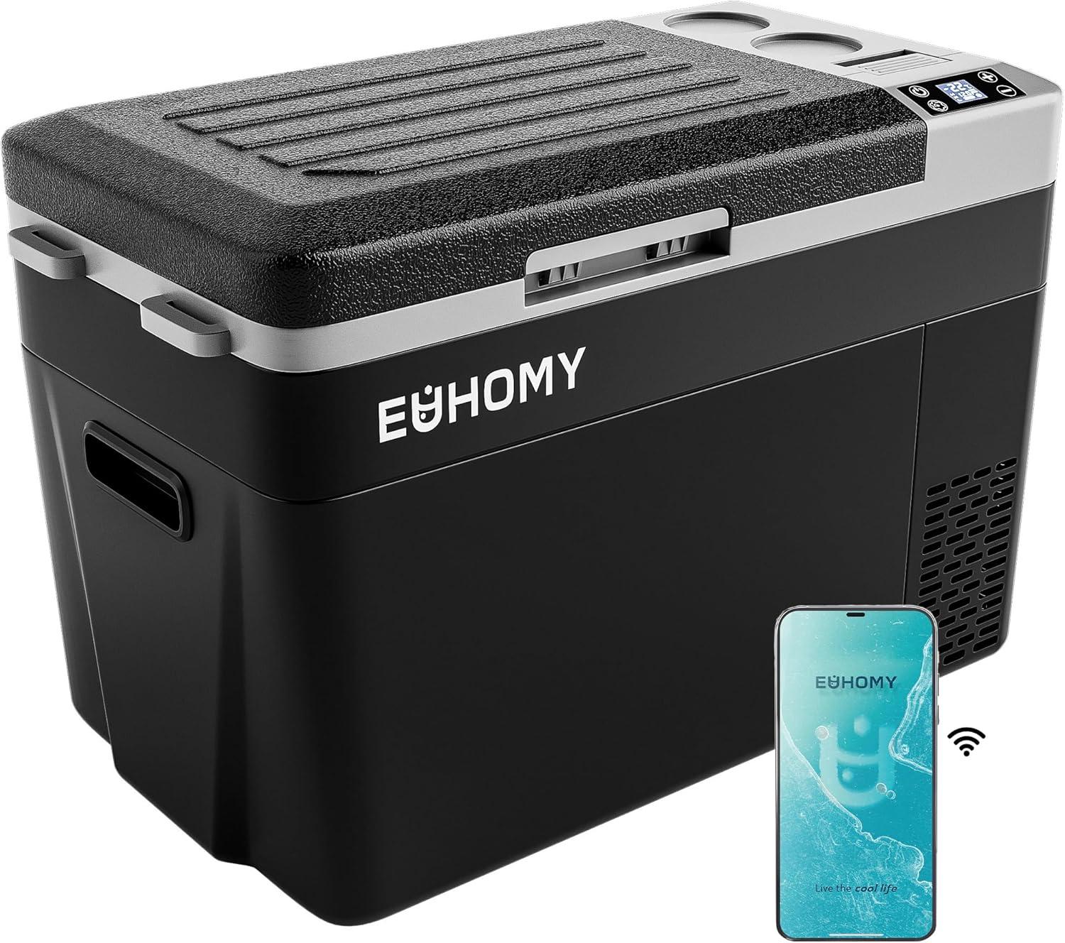 Package Inclusions & 2-Year Technical Support; EUHOMY electric cooler is equipped with 100/240V AC and 12/24V DC adapters and can be used at home or in the car for a variety of use scenarios. The car refrigerator offers a 2-year technical support. If you have any questions about our car fridge, please reach out to EUHOMY, and we will help you as soon as possible