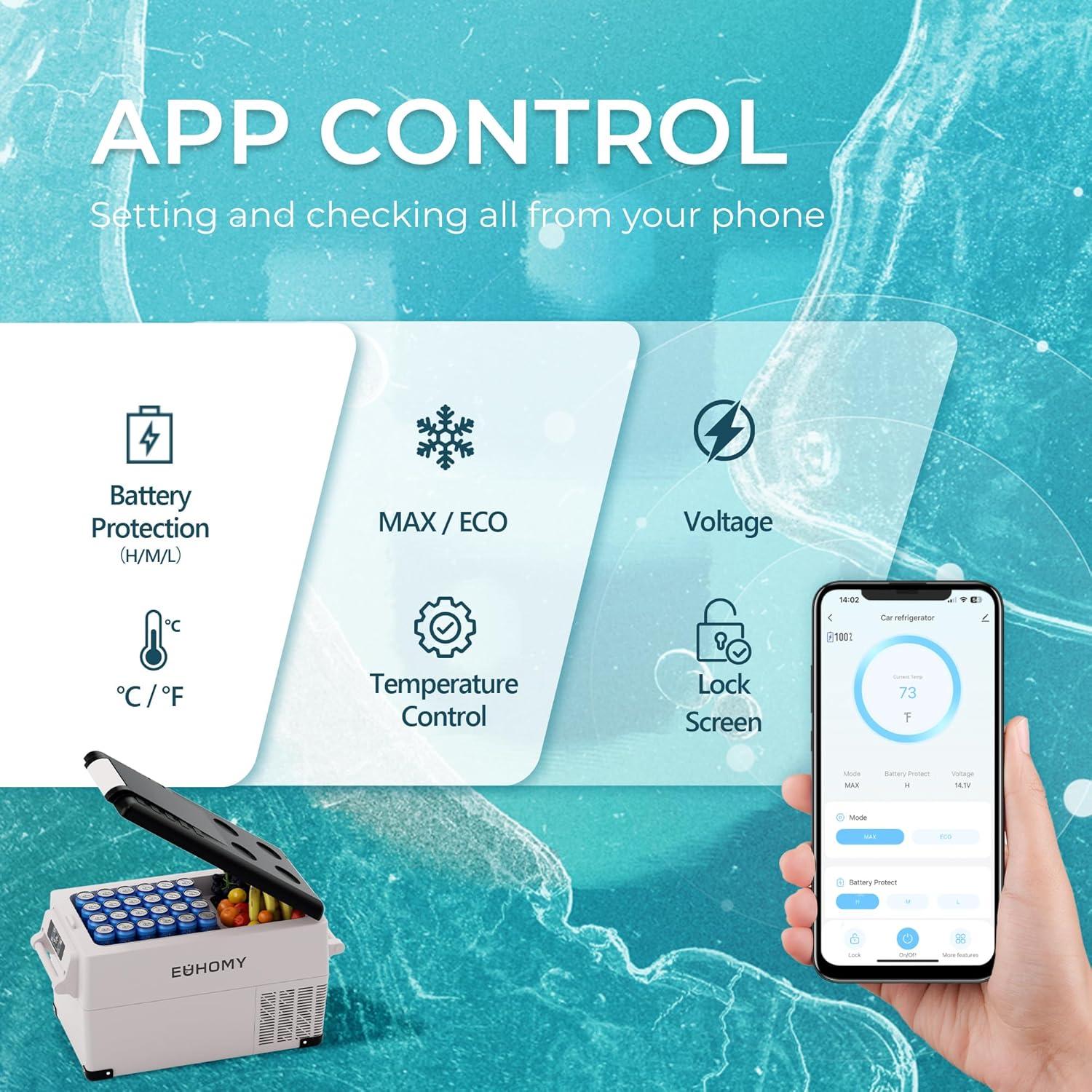 Dual Storage & APP Control; The 12v refrigerator is designed with two zones to effectively reduce odor. The 12v cooler features a removable internal basket for easy storage and access. With Bluetooth mode and app control, you can conveniently manage the car cooler from a distance to facilitate your journey