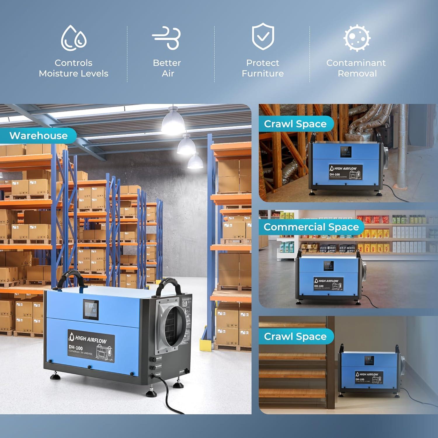 EUHOMY 160 Pints Commercial Dehumidifier, Large Dehumidifier With Drain Hose, Timer and 4 Wheels,Industrial Dehumidifiers for Flood Repair, Drying Basement, Warehouse and Factory(DH-01)