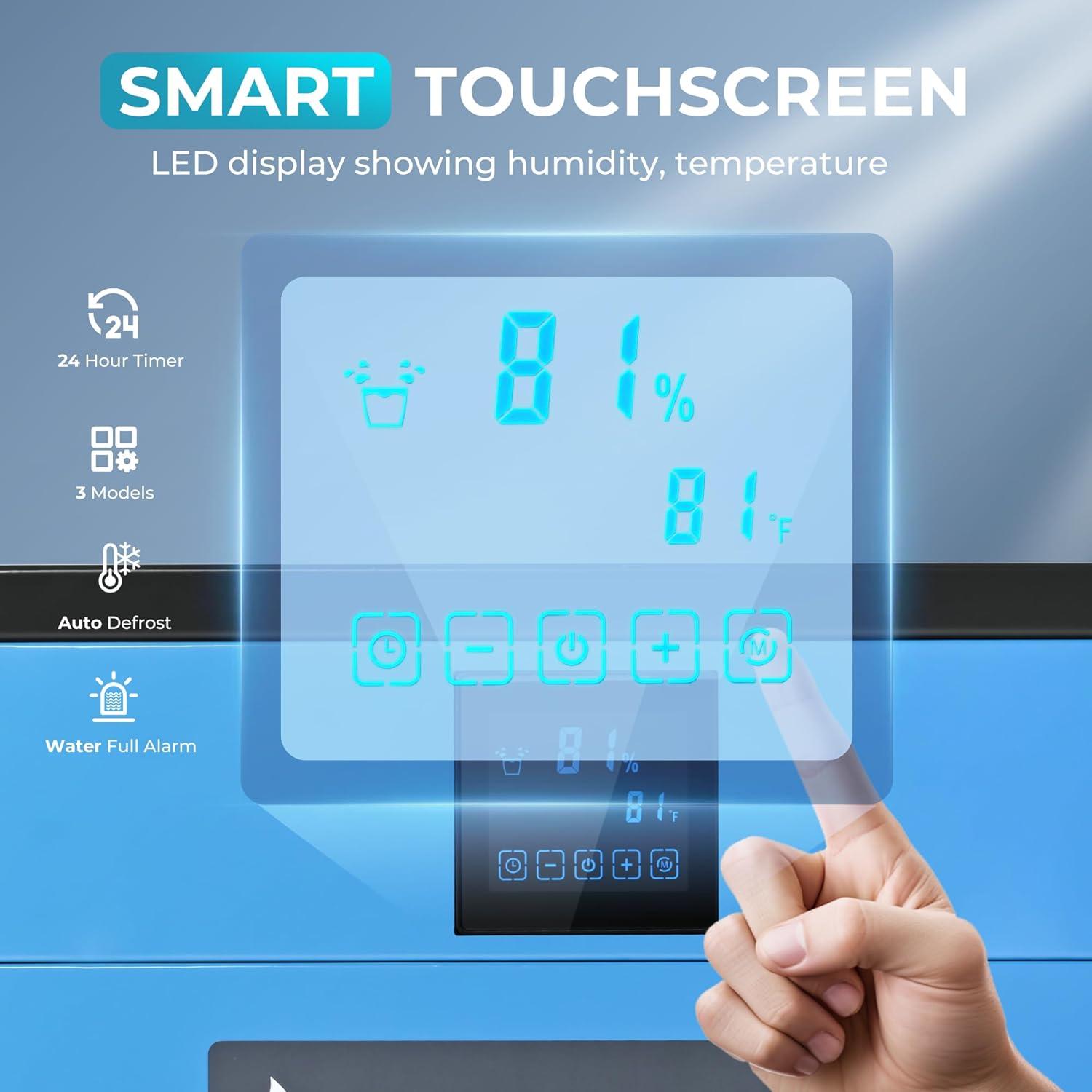 【Safe,Intelligent & Multifunctional】Our home dehumidifiers for home feature smart control systems that make it easy to adjust settings and customize your dehumidification experience. You can easily control humidity, adjust fan speed, and set a timer for up to 24 hours with the push of a button. At the same time, our dehumidifiers are also equipped with auto shut-off, auto restart, defrost function, etc. We hope to give you a smart, convenient and efficient use experience.