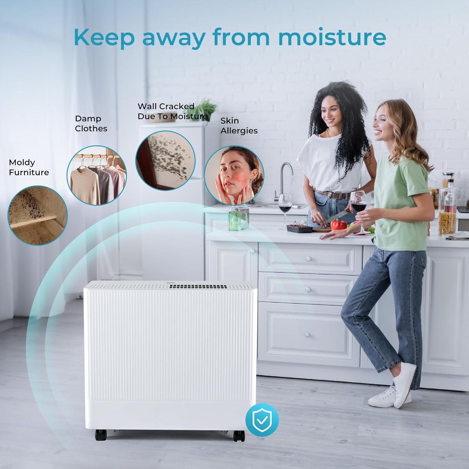 【Safe,Intelligent & Multifunctional】Our home dehumidifiers for home feature smart control systems that make it easy to adjust settings and customize your dehumidification experience. You can easily control humidity, adjust fan speed, and set a timer for up to 24 hours with the push of a button. At the same time, our dehumidifiers are also equipped with auto shut-off, auto restart, defrost function, etc. We hope to give you a smart, convenient and efficient use experience.