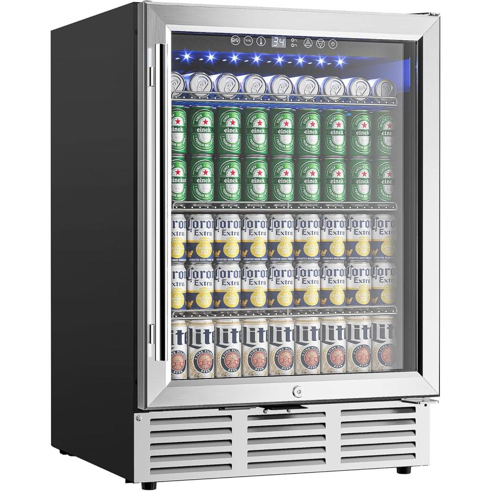 Cooling & Storage in One – The beer fridge adopts advanced circulating air duct refrigeration technology, it doesn't produce air frost, and the powerful compressor's can give full play to its performance, making it run with lower power consumption (0.84kwh/day) and low noise (≤40dB). The drink fridge features a high-quality stainless steel frame and two layers of tempered glass, as well as a seamless foam layer to maximize the taste of beverages