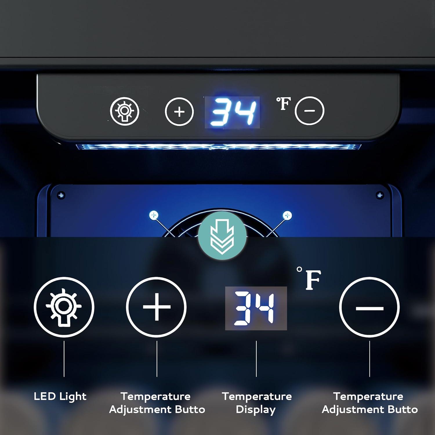 Cooling & Storage in One – The beer fridge adopts advanced circulating air duct refrigeration technology, it doesn't produce air frost, and the powerful compressor's can give full play to its performance, making it run quietly (≤42dB) with lower power consumption (0.84kwh/day). We upgraded the drink fridge with a stainless steel door that incorporates a high-density foam layer to improve insulation and prevent cold air from escaping