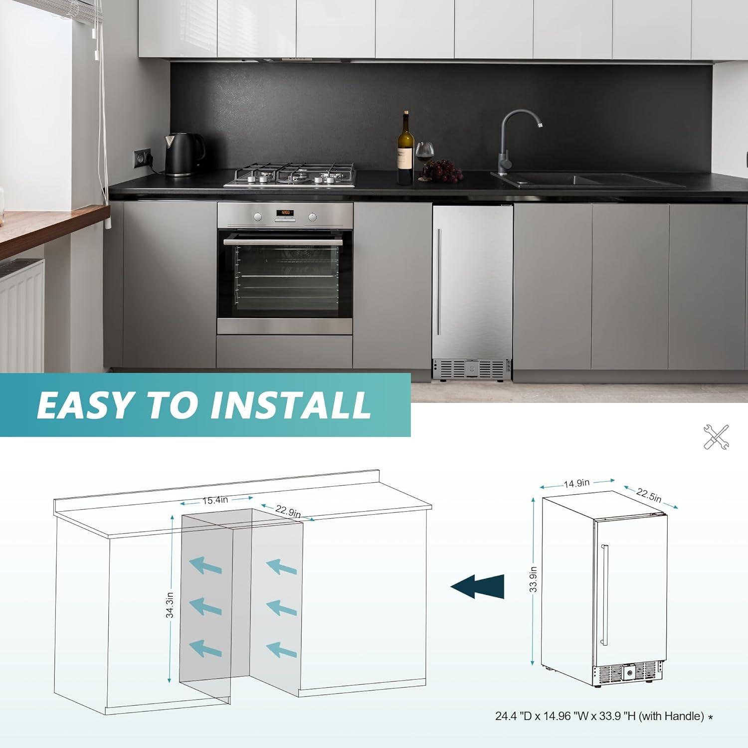 EUHOMY 24 Inch Beverage Refrigerator, Built-in and Freestanding Beverage Cooler 180 Can, Under Counter Beverage Fridge with Stainless Steel Door, Outdoor Refrigerator for Soda, Beer, Wine(15" Stainless Steel Refrigerator)