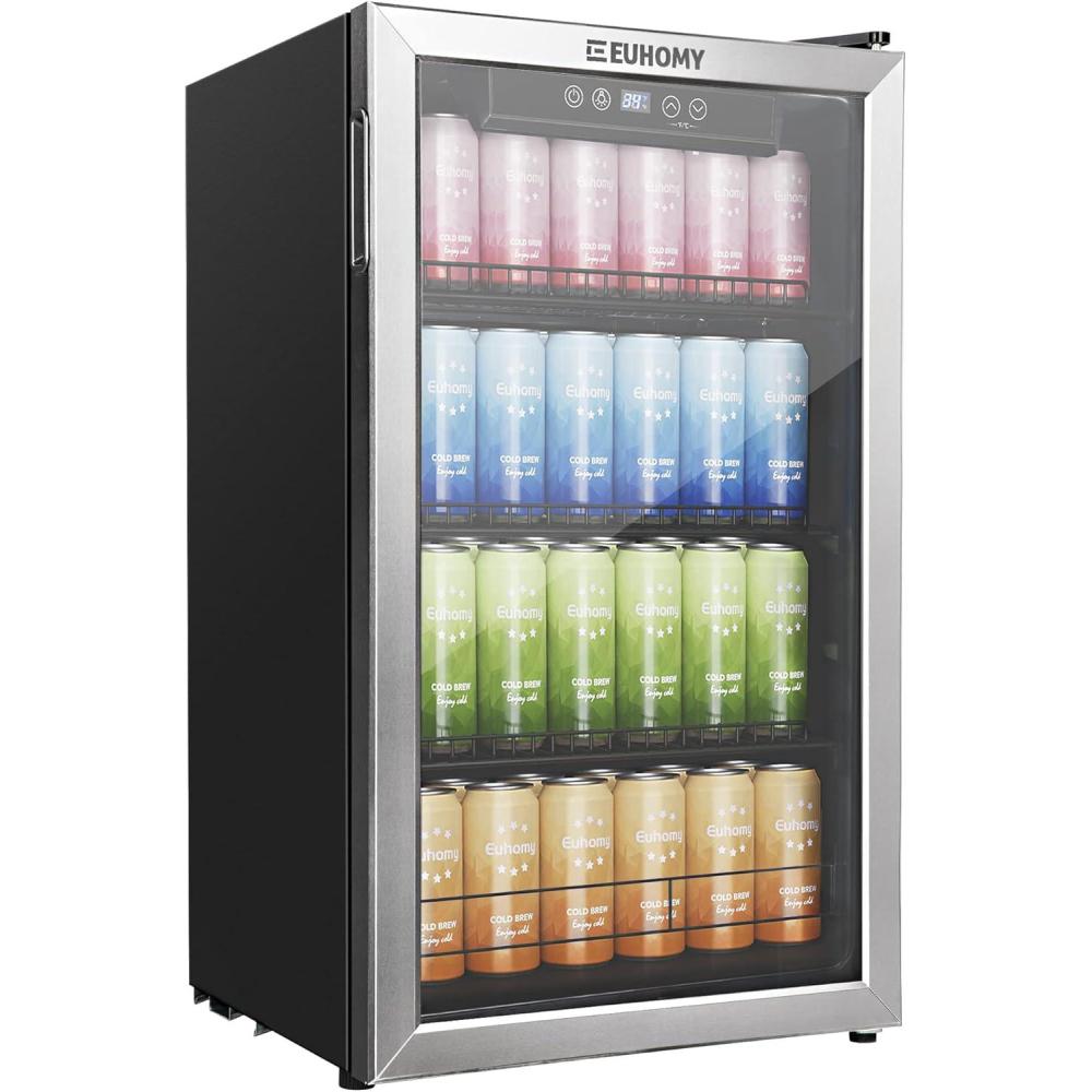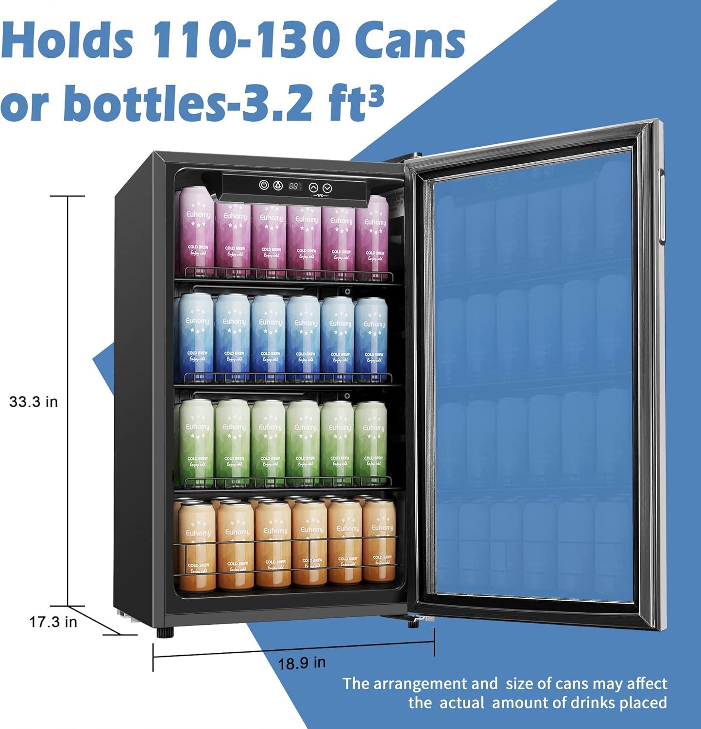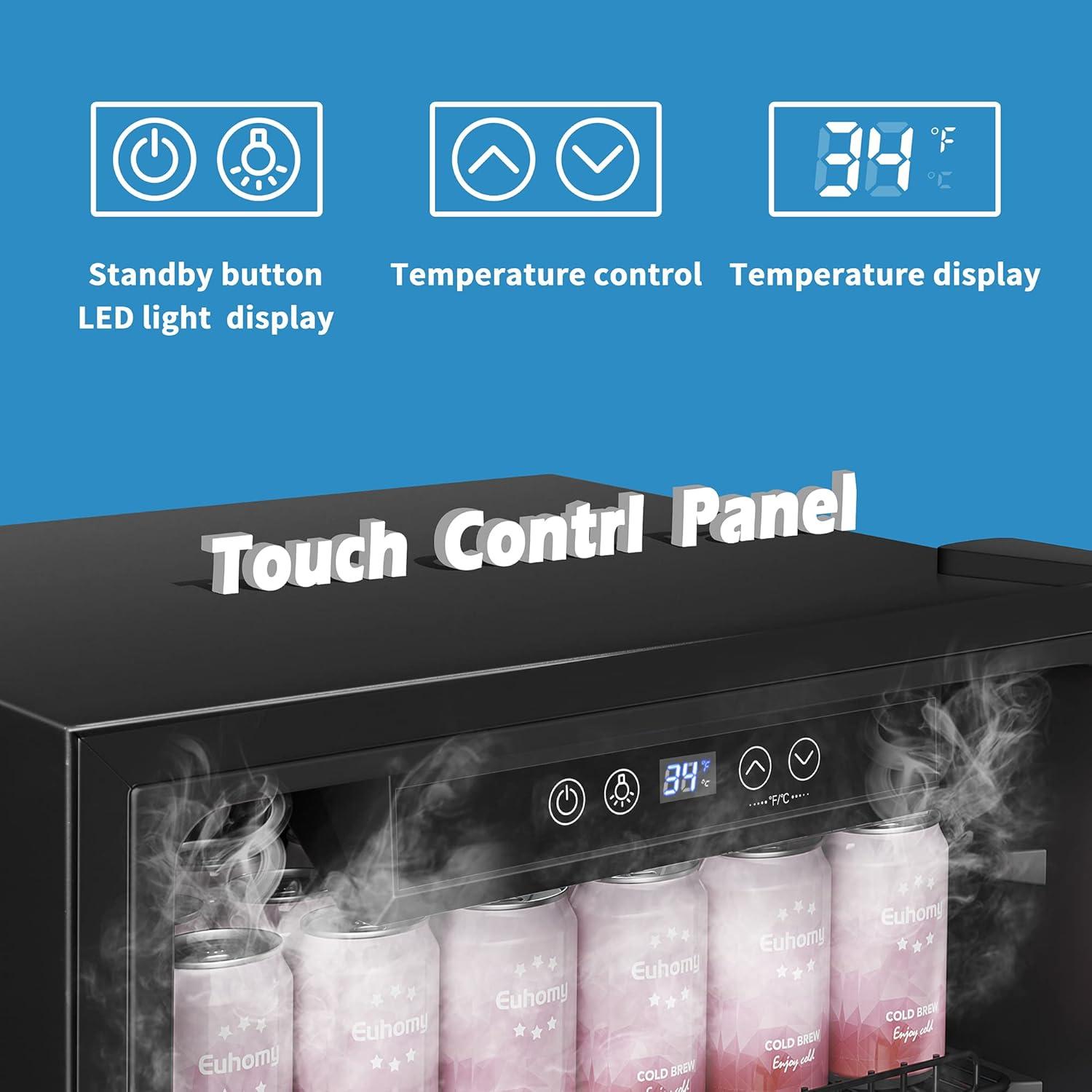 EUHOMY 24 Inch Beverage Refrigerator, 180 Can Built-in Beverage Cooler, Under Counter Beer Fridge with Glass Door for Soda, Water, Wine – For Kitchen, Bar or Office(24″ Undercounter Beverage Refrigerator)