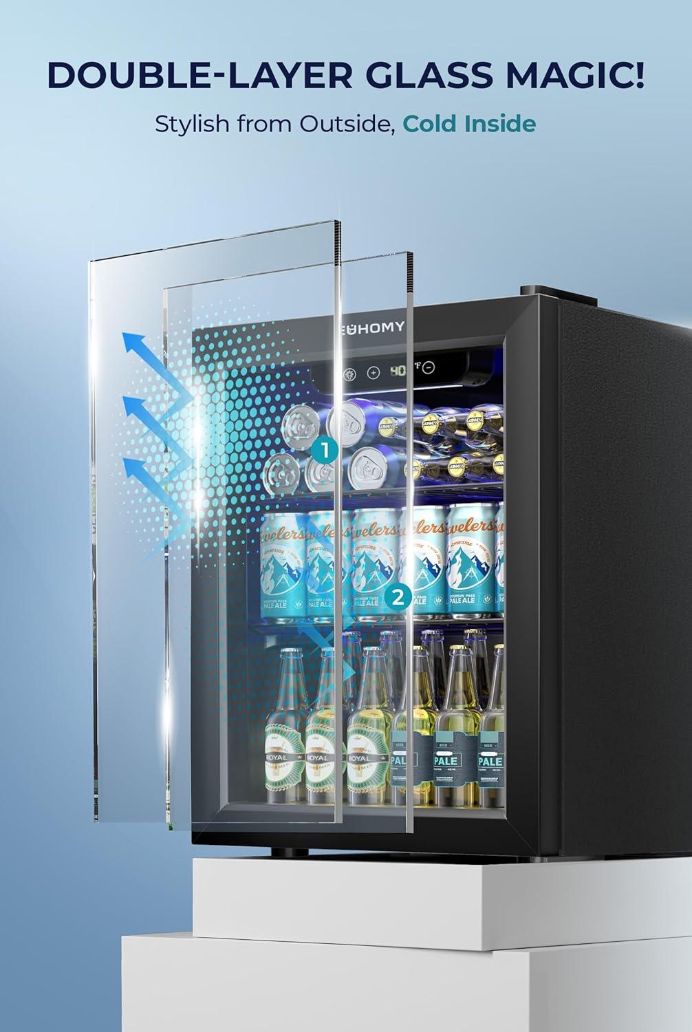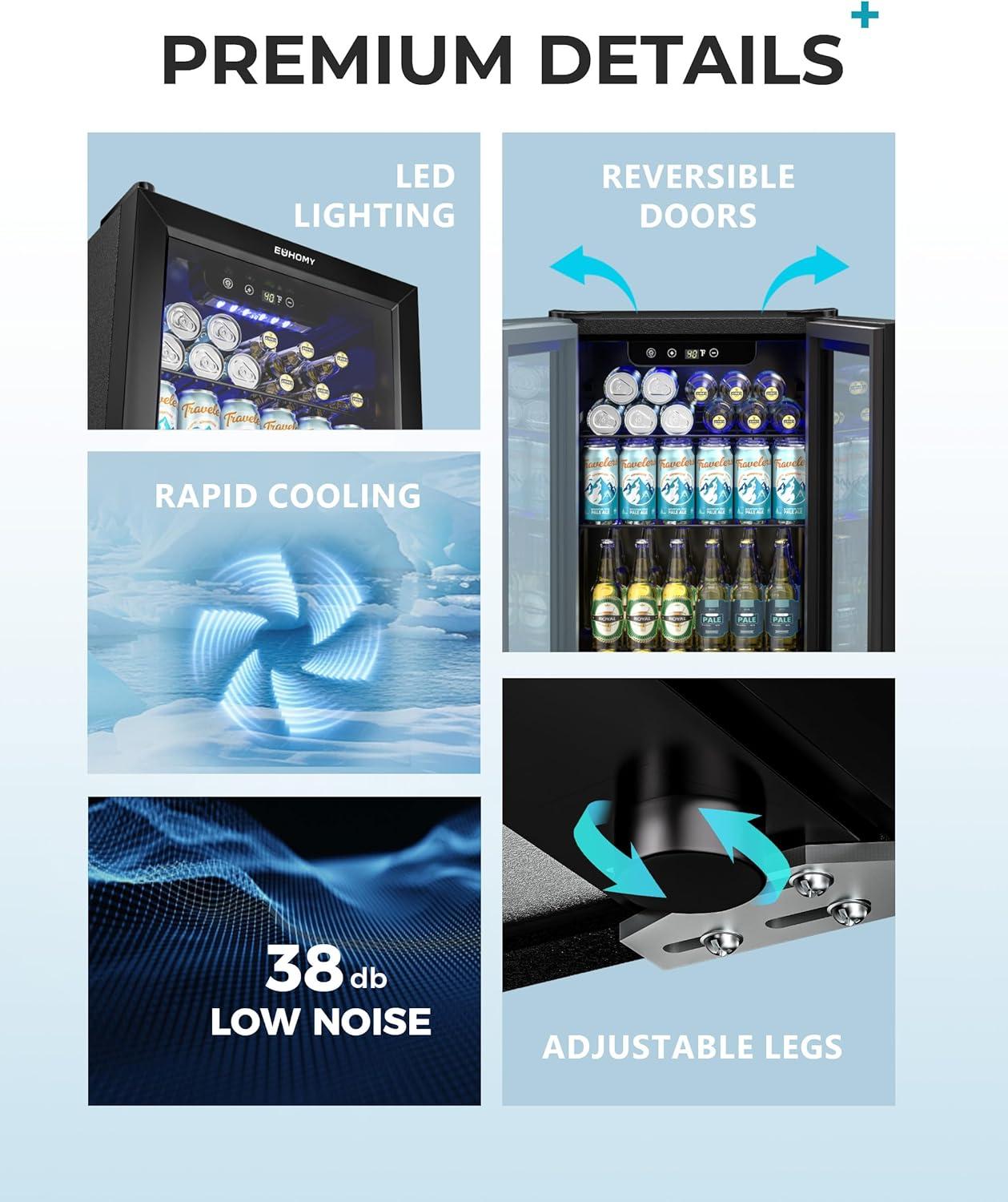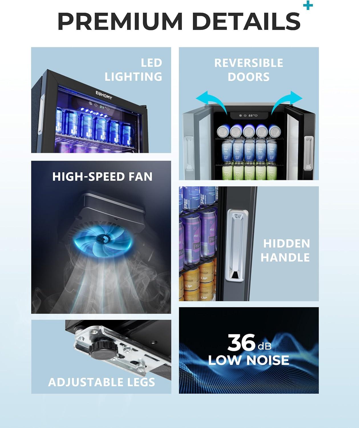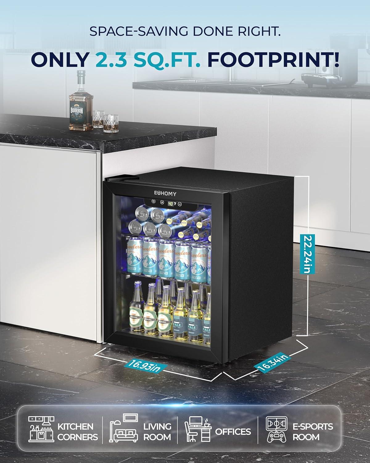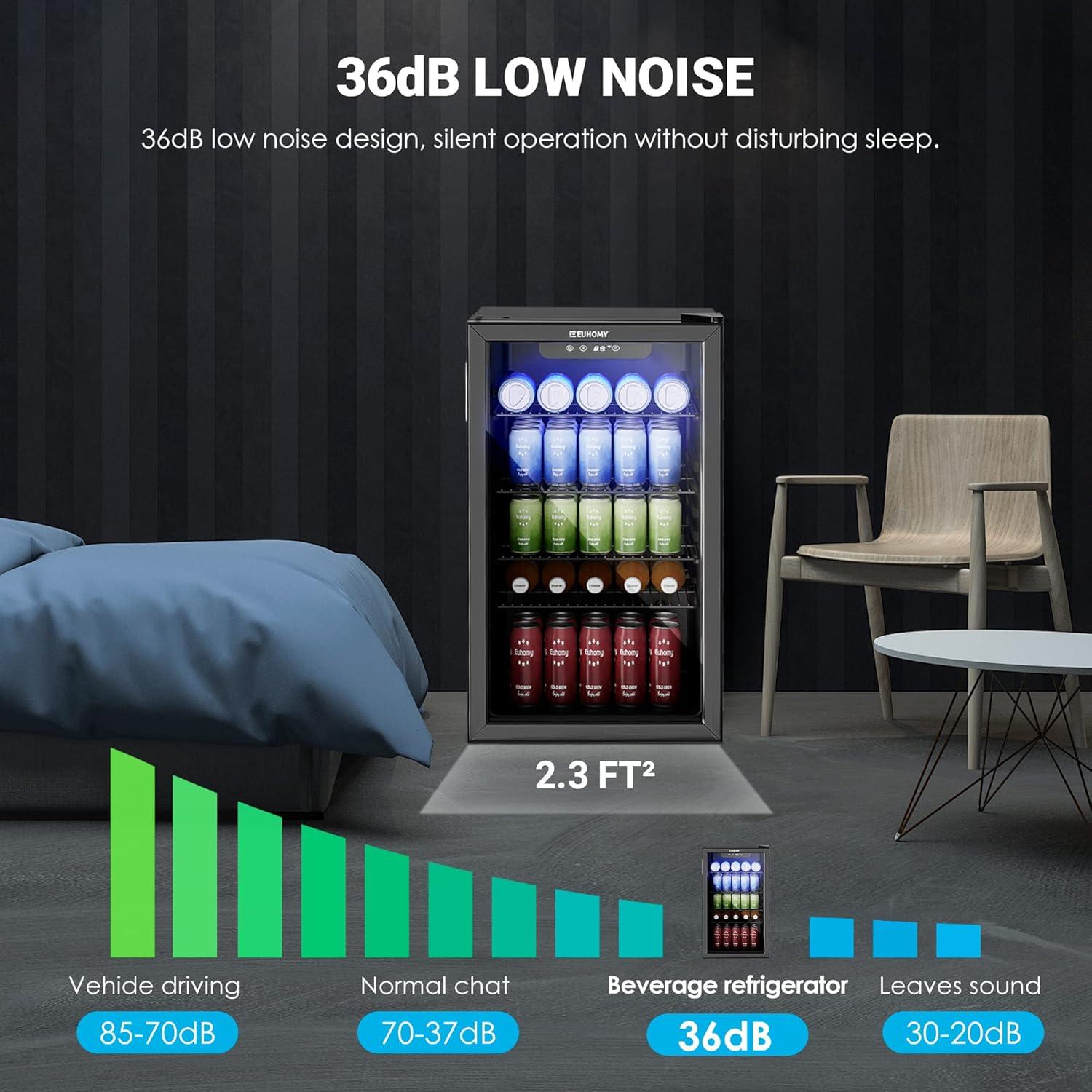 Score big savings on EUHOMY Beverage Refrigerator and Cooler, 128 Can Mini fridge with Glass Door, Small Refrigerator with Adjustable Shelves for Soda Beer or Wine, Home/Bar/Office, Black(Black) during our back-to-school sale. Limited quantities available.