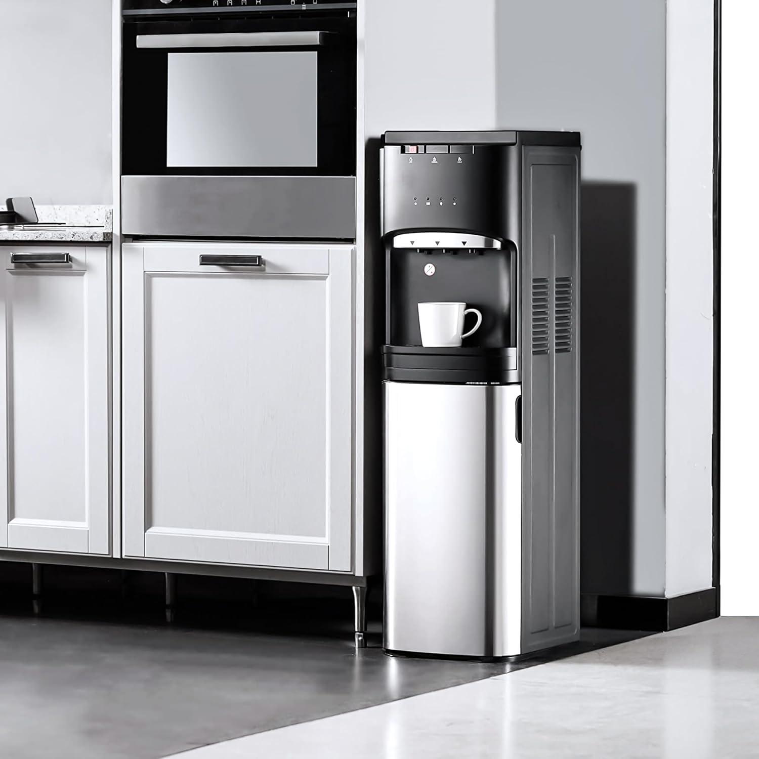 Euhomy Bottom Loading Water Cooler for 5 Gallons, 3 Temperature Settings-Cold/Hot/Warm, Child Safety Lock, Water Dispenser for Apartments, Schools, Companies, Black+Sliver(3 gallon bottle)