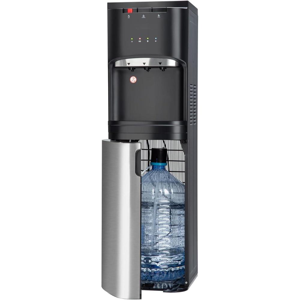 Euhomy Bottom Loading Water Cooler for 5 Gallons, 3 Temperature Settings-Cold/Hot/Warm, Child Safety Lock, Water Dispenser for Apartments, Schools, Companies, Black+Sliver(3 or 5 gallon bottle)
