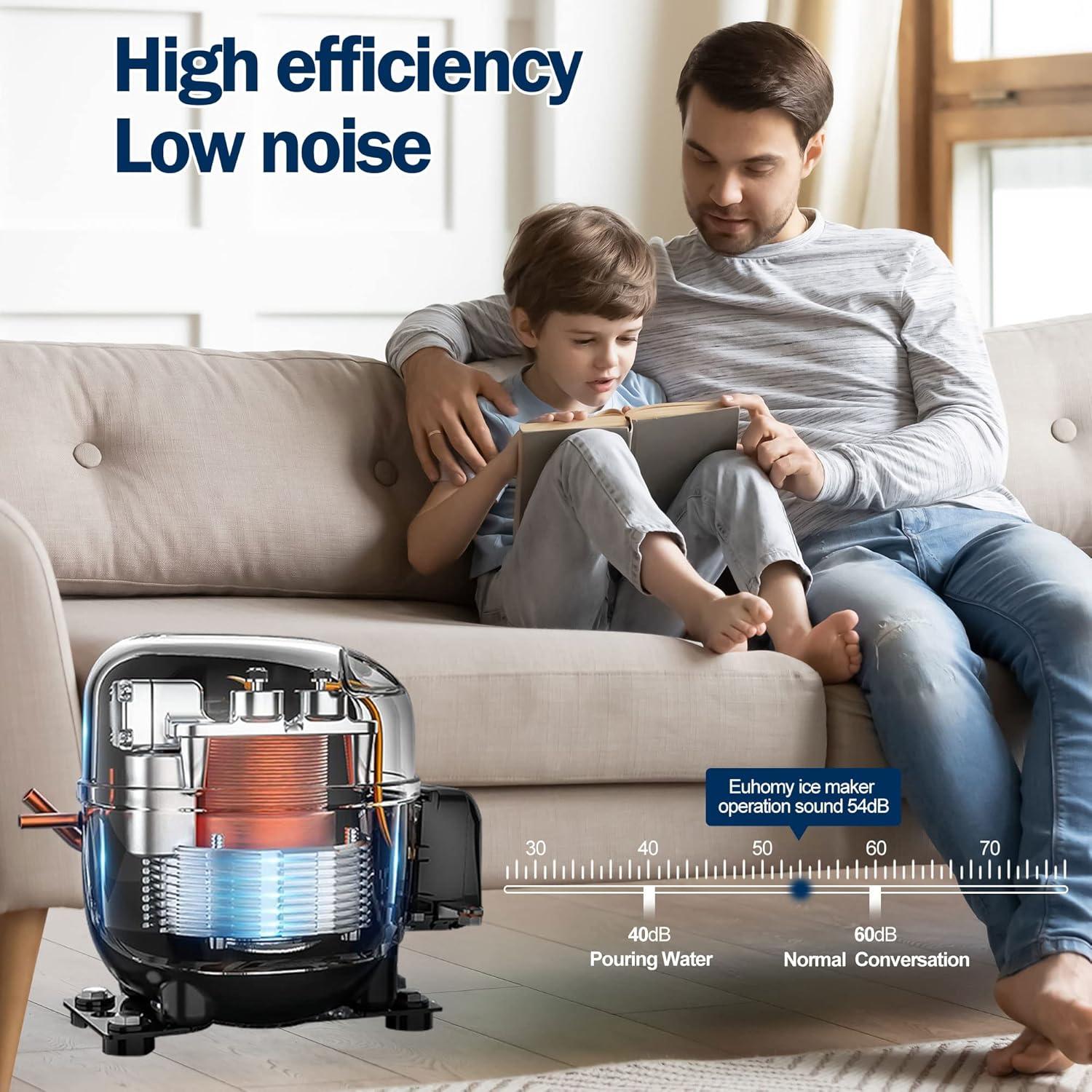 EFFICIENT & QUIET – You can enjoy the experience of this under counter ice maker all the time. The powerful compressor allows the under counter ice machine to complete the ice making process efficiently without causing too much noise. High efficiency and low noise provide you with a comfortable environment to enjoy your high-quality ice. At the same time, Euhomy industrial ice maker has an energy certificate to help you save electricity bills. In the long run, this will good for your wallet.