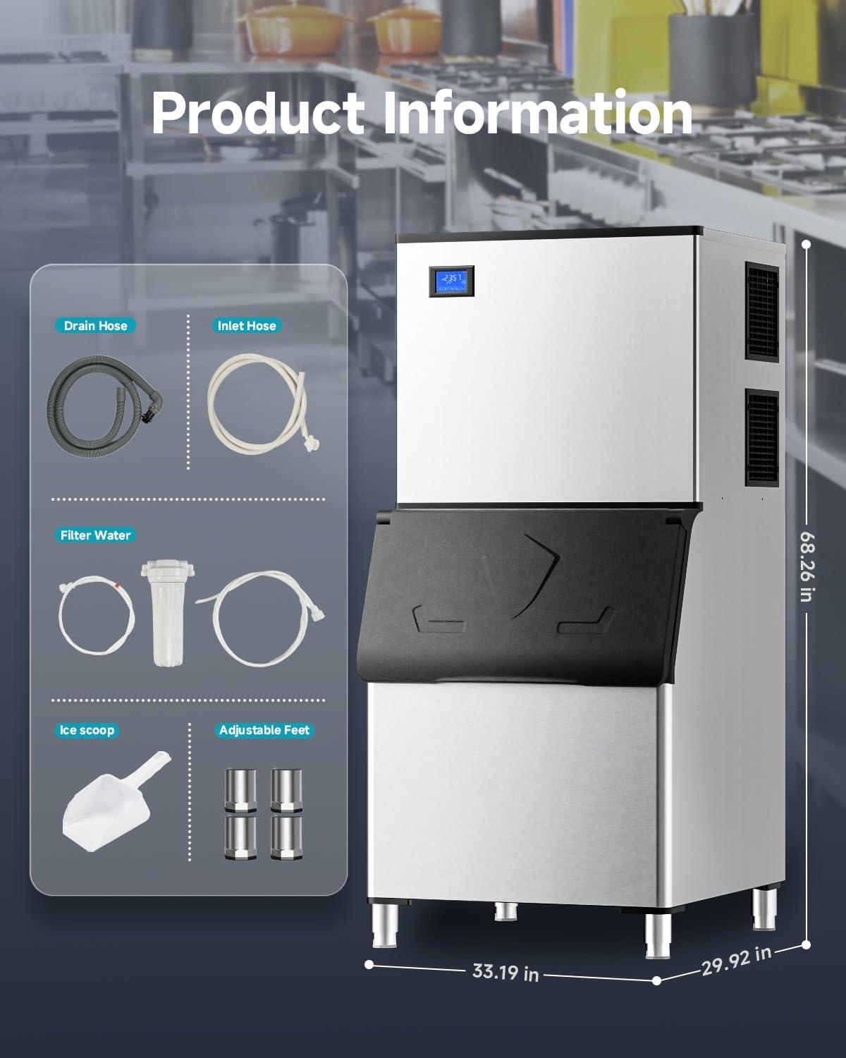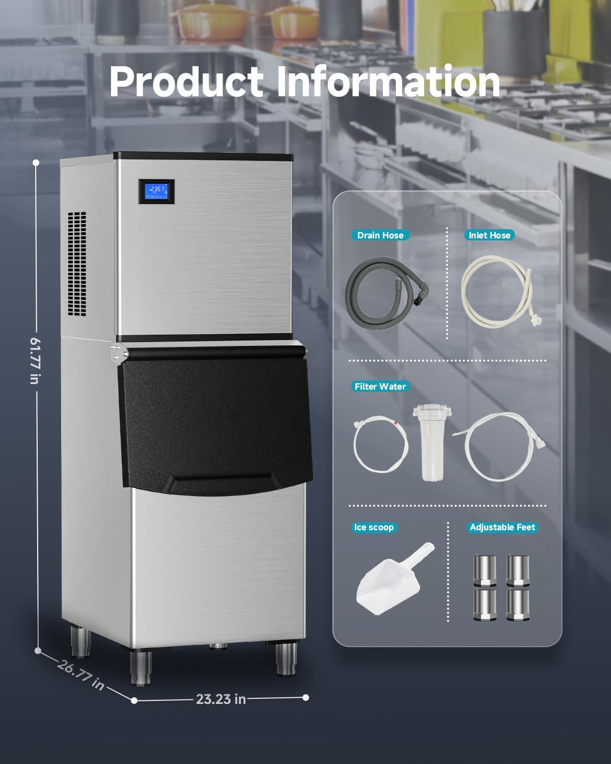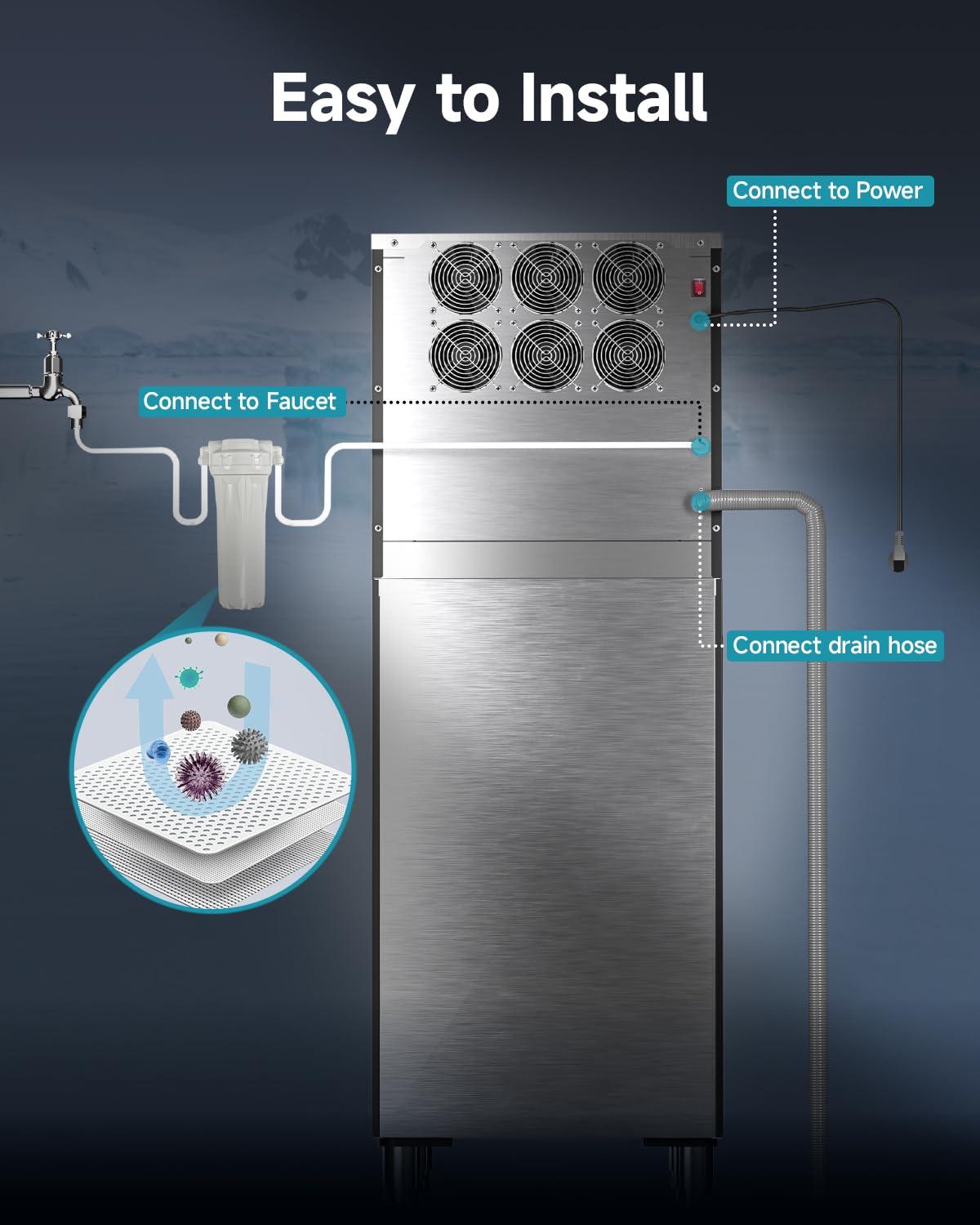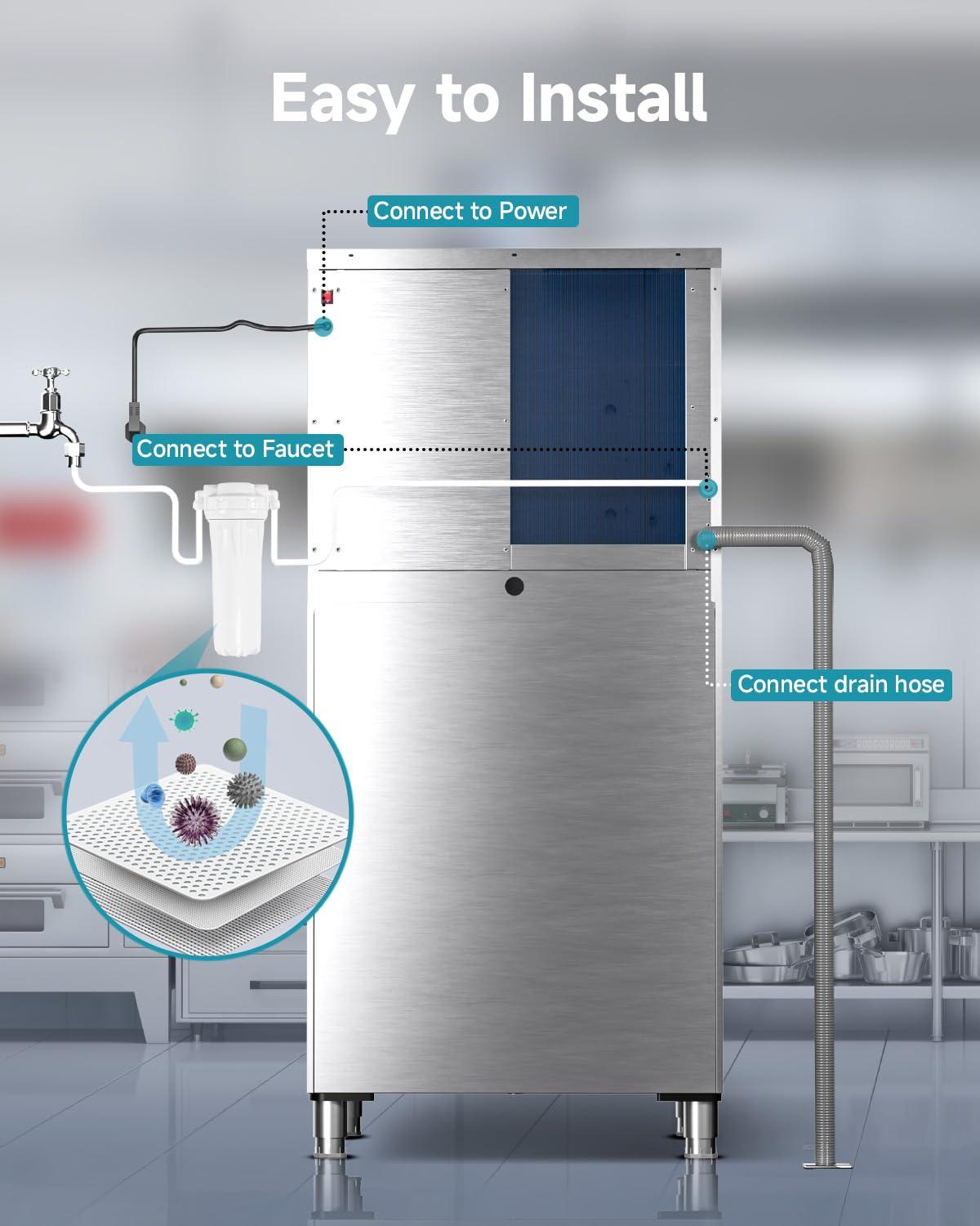 Easy Maintenance – Designed for user-friendliness, this commercial ice maker is easy to operate and maintain. It is equipped with a cleaning mode and automatic drainage function, making daily cleaning and maintenance simple and convenient. You can focus on running your business without worrying too much about the maintenance of the ice maker machine.