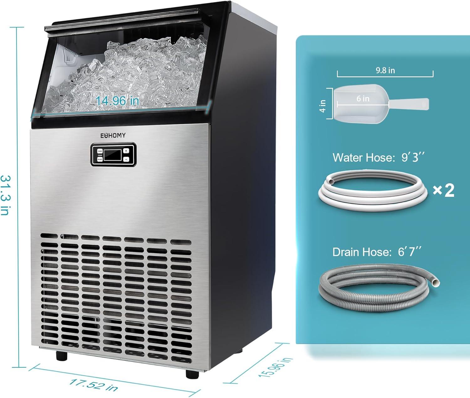 Euhomy ICE MAKER- Say goodbye to ice shortage worries with Euhomy's commercial ice maker! It produces 95 lbs of ice per day, stores 33 lbs, and prevents overflow. Portable and suitable for household and commercial use, this ice maker is perfect for home, indoor/outdoor kitchens, restaurants, bars, hotels, and grocery stores. Upgrade your ice game with Euhomy's ice maker!