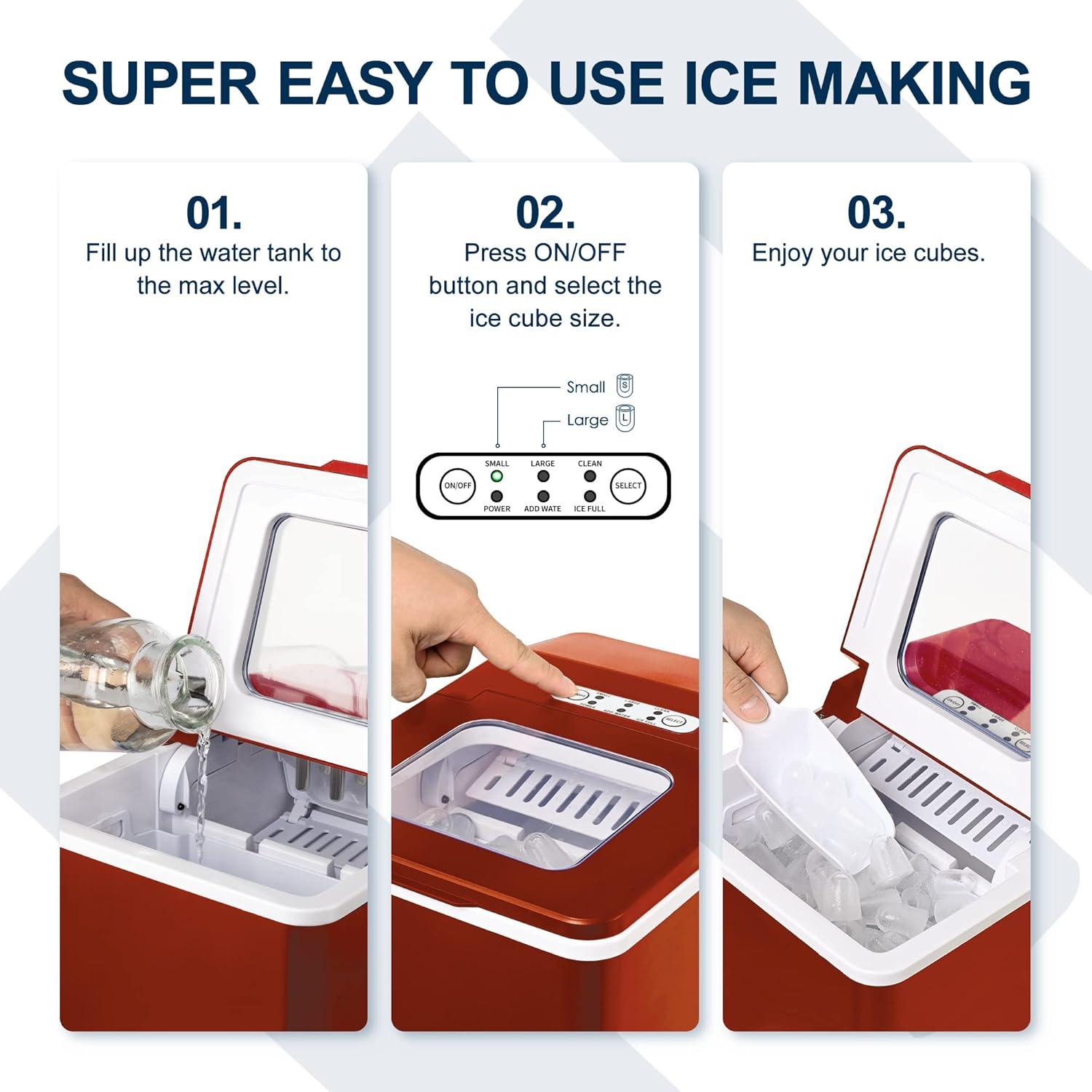 User-friendly LCD Control: The multifunctional control panel on the ice maker not only displays the ambient temperature, but also have the reminder of water shortage and ice full, help you to replenish water or remove ice promptly. meanwhile, the 24-hour timer and clean function lets you set the under counter ice machine to start or stop running at your convenience and clean your ice machine more easily!