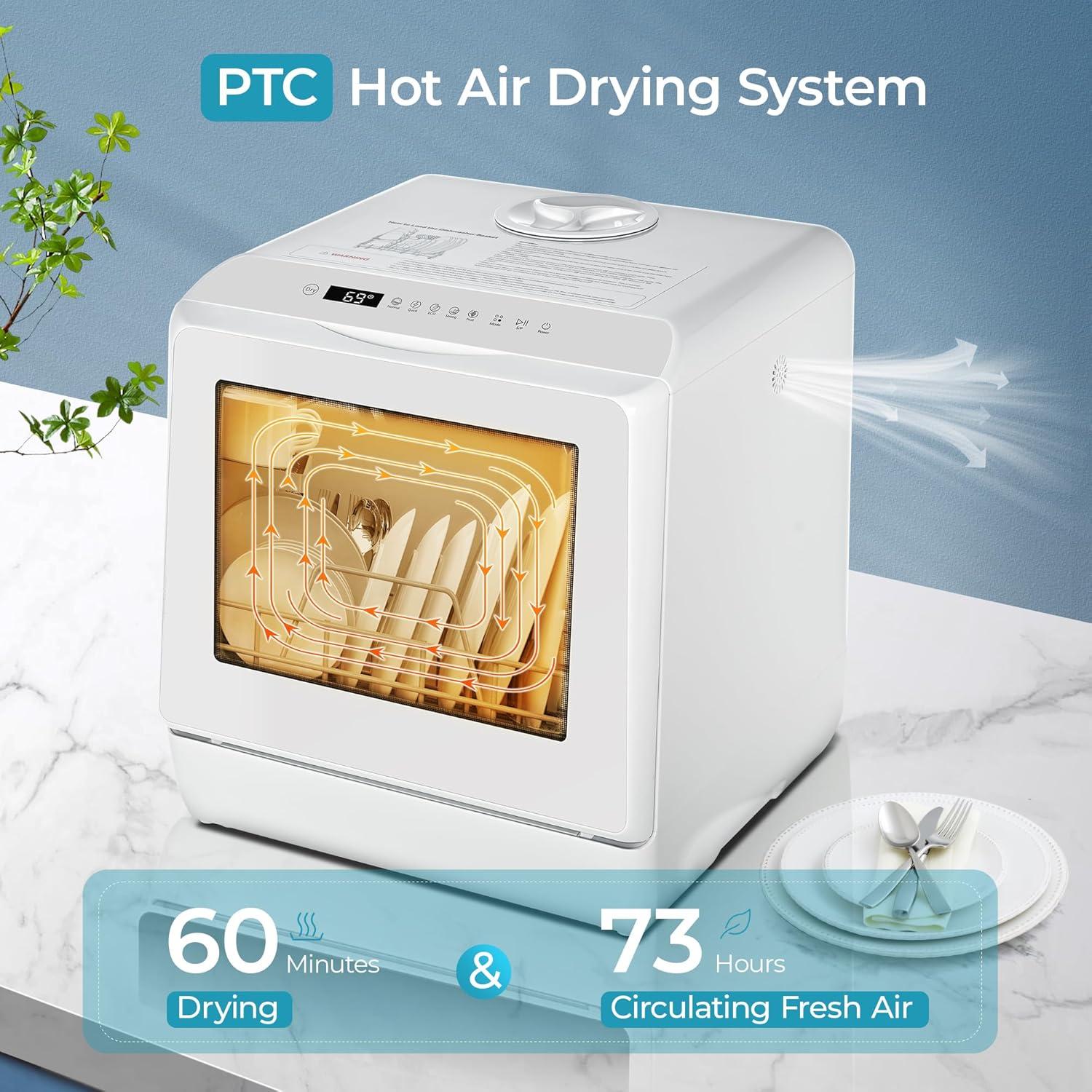 𝐄𝐧𝐡𝐚𝐧𝐜𝐞𝐝 𝐃𝐫𝐲𝐢𝐧𝐠 𝐅𝐮𝐧𝐜𝐭𝐢𝐨𝐧: Equipped with an advanced drying mode, the Euhomy compact dishwasher provides 60 minutes of hot air drying followed by 73 hours of automatic ventilation. This tabletop dishwasher can ensure your dishes stay clean, dry, and free from unpleasant odors. For added flexibility and hygiene, the drying function can be activated alongside any washing cycle—except the fruit mode—or used independently as needed