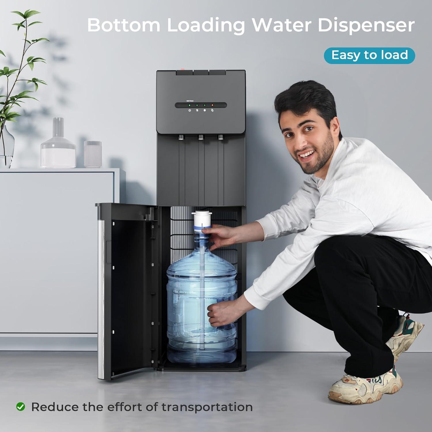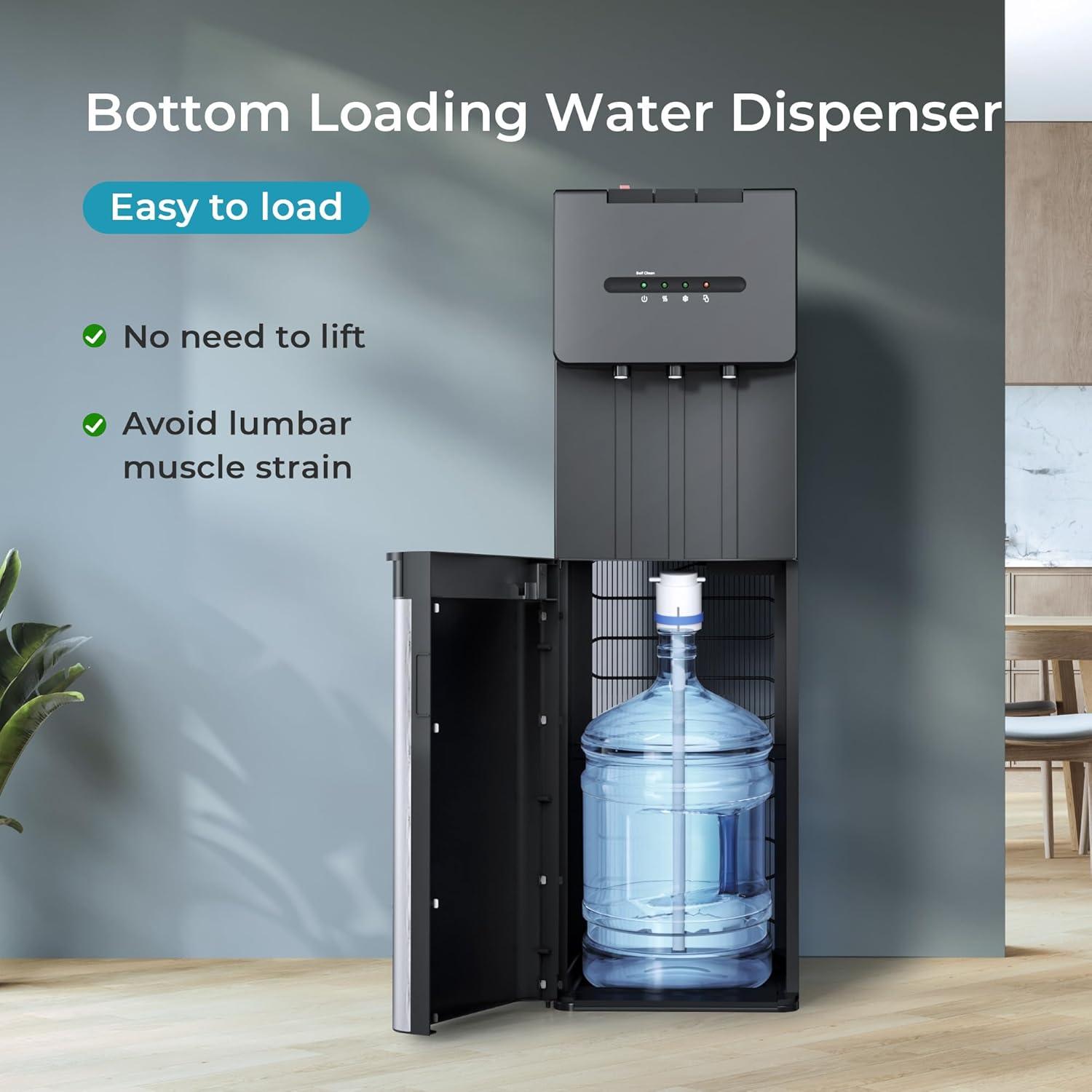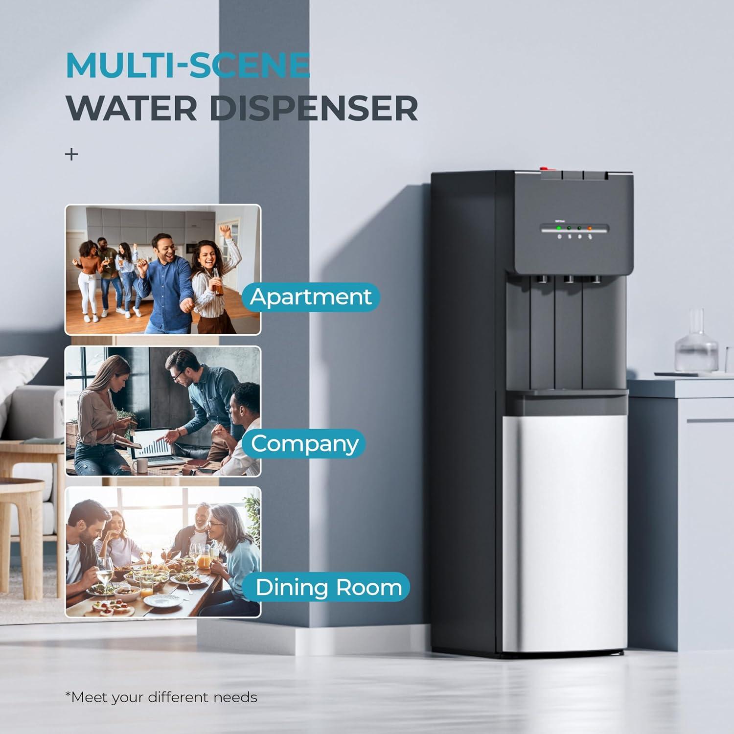 Bottom Load Water Dispenser: Euhomy water coolers can accommodate 3 or 5 gallon water bottles.