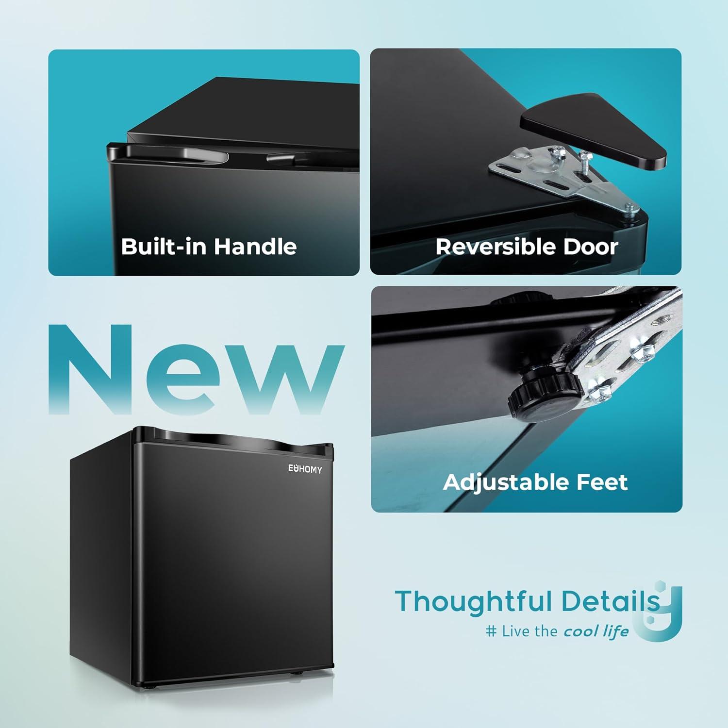 FUNCTION UPGRADES – Euhomy freezer have designed some additional functions that are different from those on the market according to people's habits and needs. REVERSIBLE DOOR: It is easy to change the direction of the door switch. ADJUSTABLE FEET: keep the machine from being corroded by moisture on the ground. BUILT-IN HANDLE: not only easier to open the freezer door, but also makes the freezer more simple and beautiful