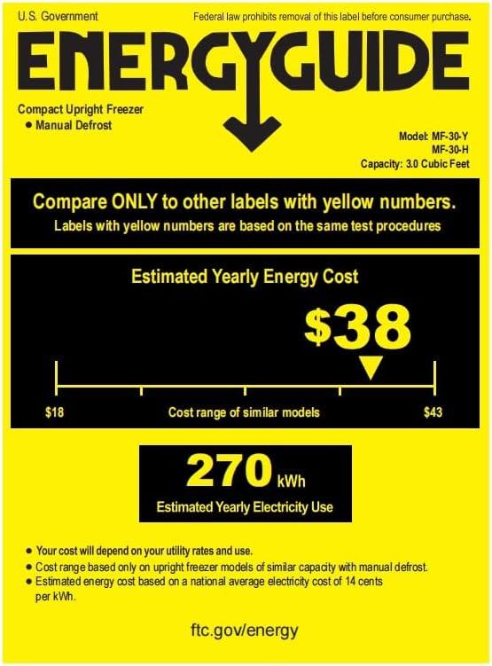 7-LEVEL THERMOSTAT SYSTEM – The temperature control device of the 3.0 cu.ft freezer is designed inside the freezer. The 7-level temperature control system allows you to choose within the temperature range -7.6°F to 6.8°F. The upright freezer is equipped with a powerful compressor, which not only keeps the freezer working efficiently, but also the deep freezer can help you save electricity, which will reduce your electricity bill
